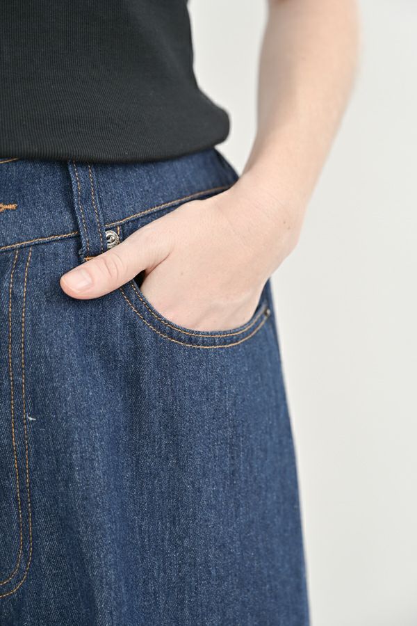前から見るとワイドパンツ、後ろから見るとAラインスカートになっているデザインパンツ! 後ろはゴム仕様になっているのでラクチン!なのにオシャレ!! 股下にステッチが入っているの為、生地が足の動きに付いてくるので、自転車に乗った時に車輪に巻き込まれる可能性も軽減されます。