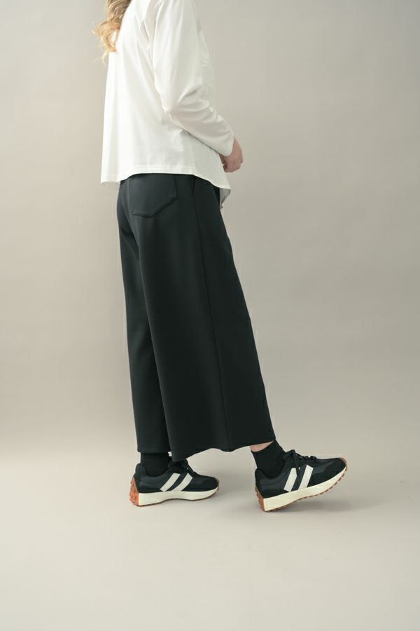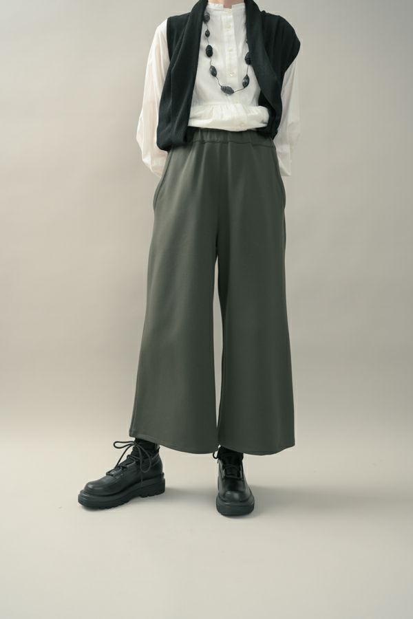 伸びのいいポンチ素材のカットソー8分丈ワイドパンツです。