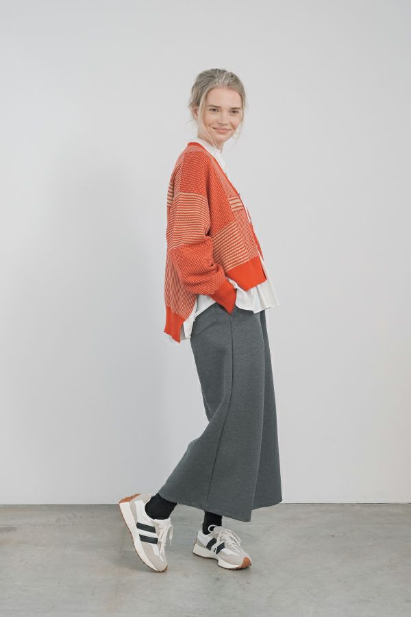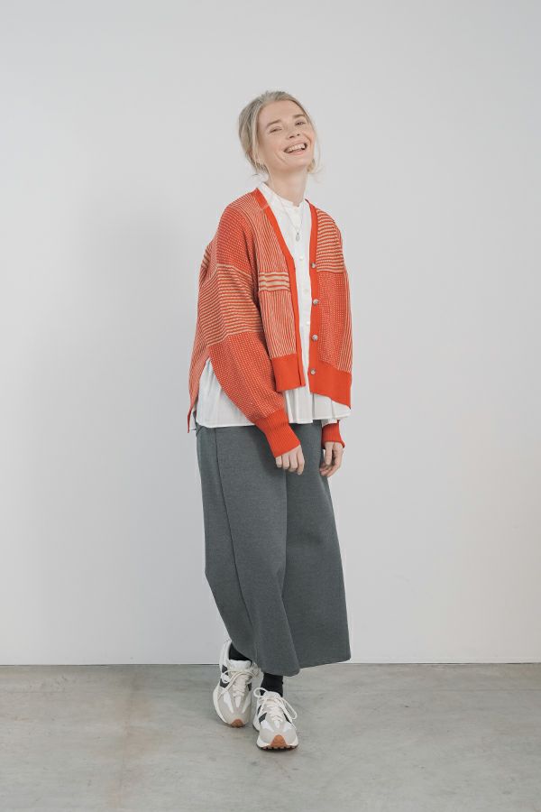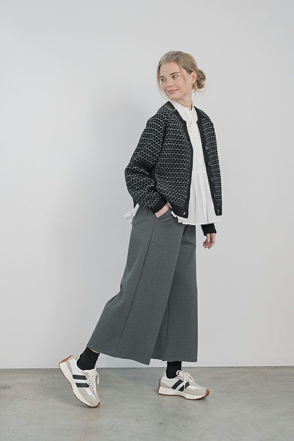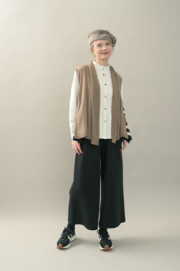 ウエスト、腰廻りが程良いフィット感で、裾が広めできれいめな着こなしにも対応できます。しっかり編んだ素材なのでシルエットを拾わず心地いい着用感!伸びがいいので小柄な方でも着用可能なサイズ感です。