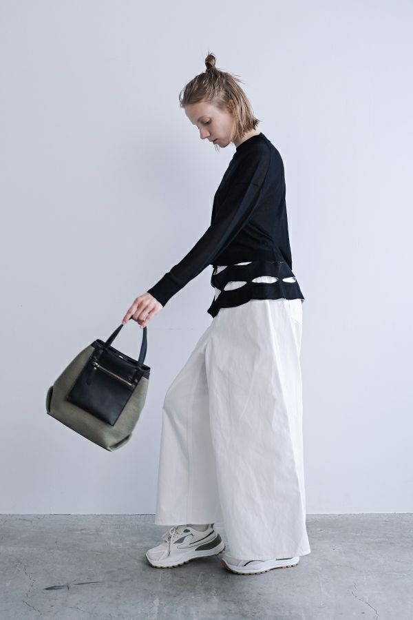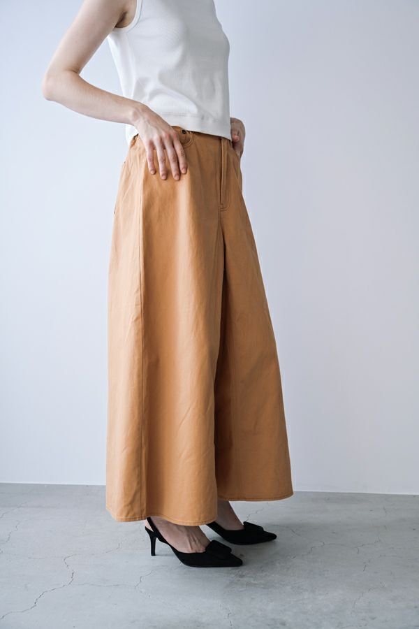 デニムスカパンのカラーバージョンが、昨年大好評。今季は定番として新色カラーも登場です。 前から見るとワイドパンツ、後ろから見るとAラインスカートになっているデザインパンツ。後ろゴム仕様になっているのでラクチンなのにオシャレ! 股下にステッチを入れることで、生地が足の動きに付いてくるので、自転車に乗った時に車輪に巻き込まれる可能性も軽減されます。 カラーバージョンはステッチを配色にせず生地と同系にすることで、きれいめスタイリングに合わせやすくしました。下半身をキレイにカバーしてくれるのでスタイルアップ効果も期待。 短丈のアイテムとの相性も◎