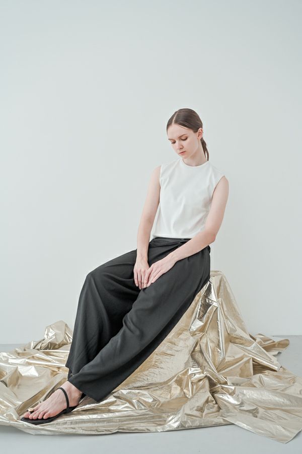 ハイセンス×こなれ感。一点投入で大人モードが叶うデザインパンツ。 「折り紙」からインスパイア。一見巻きスカート風に見える、モード感漂うデザインが目を惹く。ゆったりとしたワイドシルエットは、風通し良く清涼感ある穿き心地です。 体型カバーも兼ね備えた優秀アイテム。 そして、拘りが詰め込まれたウエストデザイン。上品なツヤ感のある素材のベルトに、エッジの効いたピスネームでアクセントを。ベルトループに巻かれた共生地の細ベルトは、ルーズに巻いてこなれ感を出したり、ラフに垂らして抜け感を出したり、スタイリングの雰囲気に合わせて遊べます。 ●同素材の折り紙ベスト(25168-5210P-W)とセットアップ可