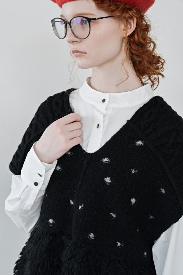 異素材の表情で魅せる、大人の立体ニットベスト。 ニットならではの異なる立体感や風合いを持つ編み地を多彩に組み合わせ、冬のスタイリングを華やかに装うベストをご用意しました。 一見シンプルなシルエットながら、肩にかけて自然に落ちるドロップラインが、ネックまわりに抜け感を与え、肩まわりに程よいゆとりを生み出すことで華奢な印象を演出します。胸元からハイウエスト位置にかけては、程よくハリ感ある編地が身体のラインから離れてきれいなドレープが出来ます。 ヘムラインにはループ編みを施し、気になるウエストラインをカバーしつつ、視覚的にウエスト位置を高く見せるデザインに。サイドスリットが動きとレイヤードのしやすさを引き立て、どこから見てもバランスの取れた美しいシルエットを叶えます。 お手持ちのシャツやTシャツに重ねるだけで、絶妙な厚みでフィット&ドレープシルエットを纏え、女性の美しい洗練スタイルを演出。一枚加えるだけで、圧倒的な存在感と魅力を引き出す、主役級のコーディネートが完成します。
