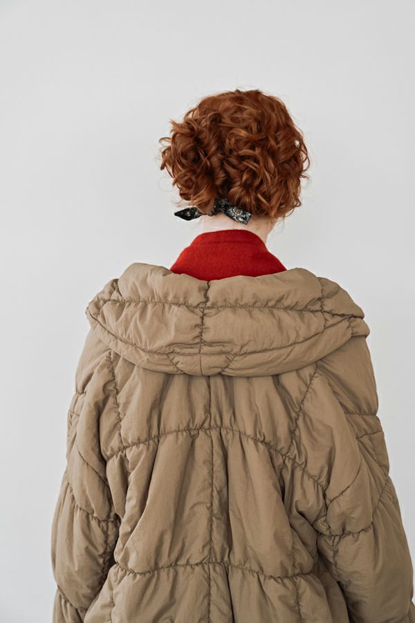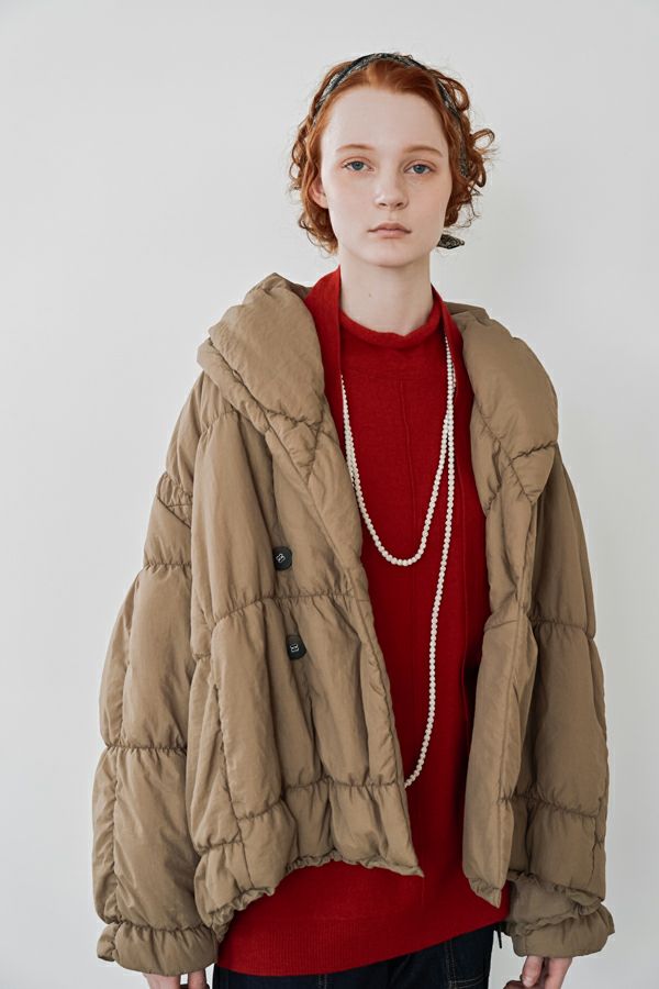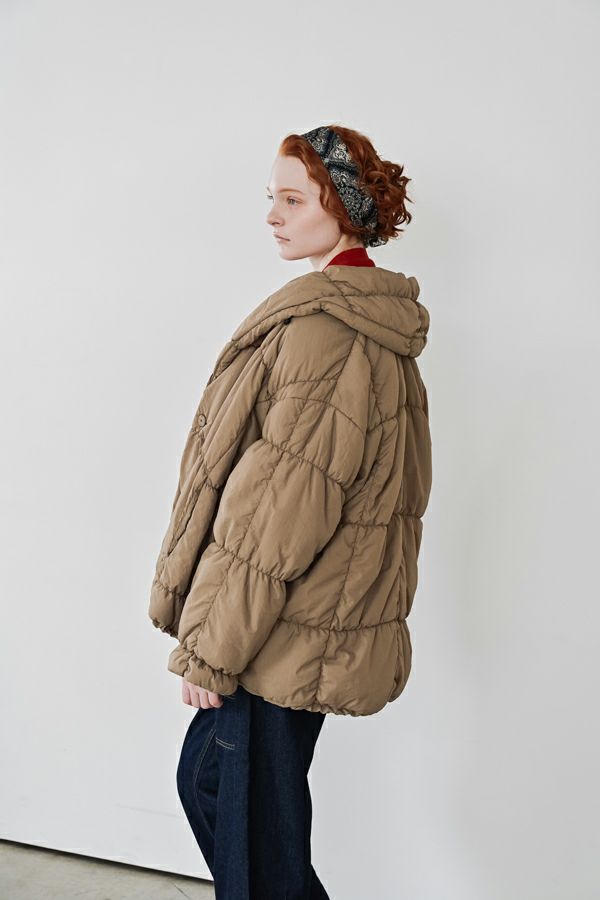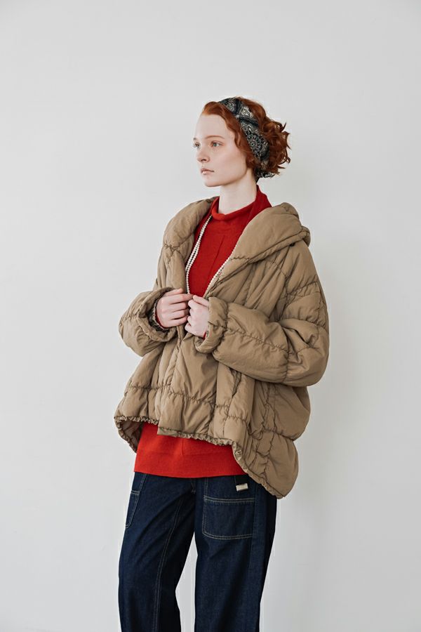 空気を纏うような軽やかさ。品よく暖かい、大人のシャーリングコート。 20デニールのナイロンを使用し、akane史上もっとも軽やかで柔らかな着心地を実現した一着。生地と中綿を一緒にギャザー加工することで生まれた独特の凹凸感が、奥行きのあるニュアンスを演出。ボリュームのあるシルエットながら、驚くほど軽く、しっかりとした防寒性も兼ね備えています。 上品なショールカラーは、首元まで閉じても開けても美しく決まり、スタイリングに合わせて印象を変えられる優秀デザイン。裾のドロスト仕様でシルエットをアレンジすれば、気分に寄り添う着こなしが完成します。 エレガンスと機能性を両立した一着は、この冬、きっと手放せなくなる存在に。 ●家庭洗濯では中綿が偏ってシルエットがきれいにならないので必ずクリーニングに出して下さい。
