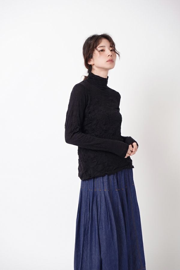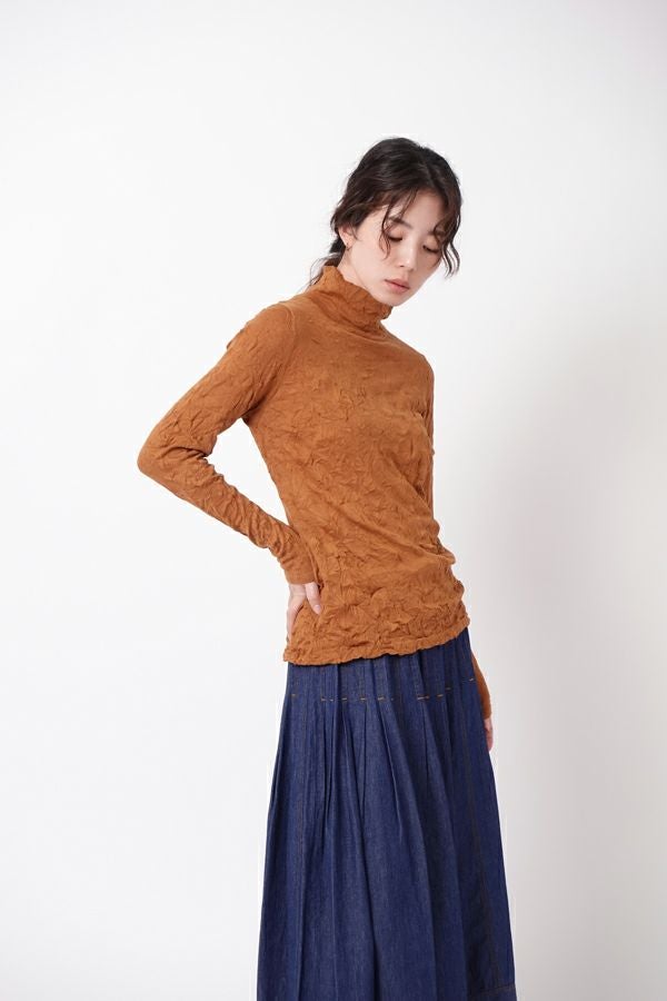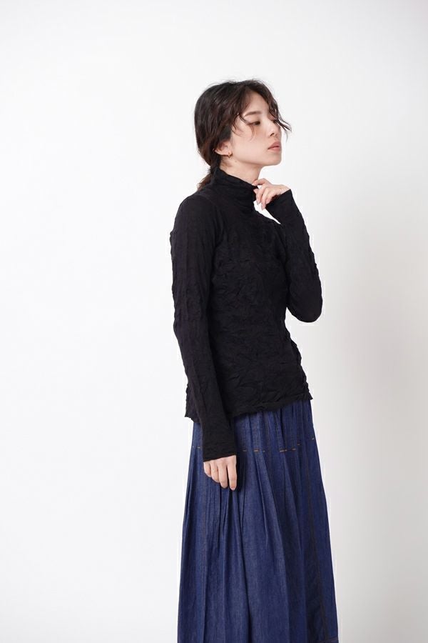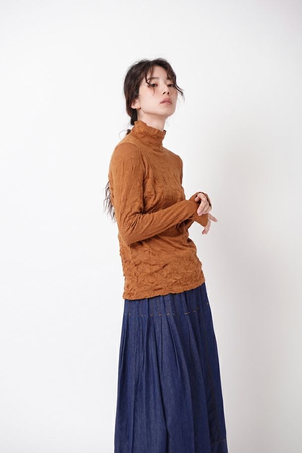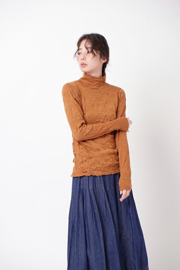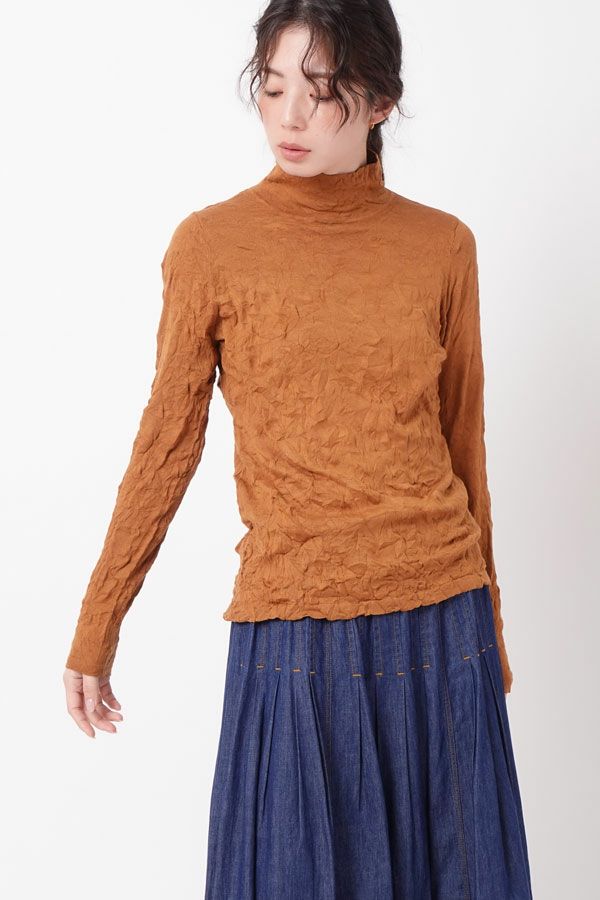 チクチクするの素材はイヤ!とおっしゃるお客様に、大変喜んで頂いている名品カットソー。この秋は、12色展開で登場! 肌触りの良い綿ポリエステルの素材で、真夏以外年中着用可能な素材です。お色違いで買い揃えても後悔しません。 職人の絶妙な加減で作られているシワ加工製品は一枚一枚のシワの出方が違う希少価値の高い製品です。 ランダムに入るシワによって体型が出にくい外観にもなっています。伸びも良く何度も着たい優しい肌触りです。衿の高さは、高すぎず低すぎない実用かつ、オシャレに着こなせる衿元を実現。色々なアイテムの着合わせに最適です。 綿とポリエステルの混紡素材で、ソフトな肌触り。シワ加工に必ず必要なポリエステルは、ポリステルの特徴である熱に強く一度熱で変形させると元に戻らない性質を利用。 肌に優しい天然繊維の綿素材との混紡素材で市場では少ないシワ加工のセーターを作りました。