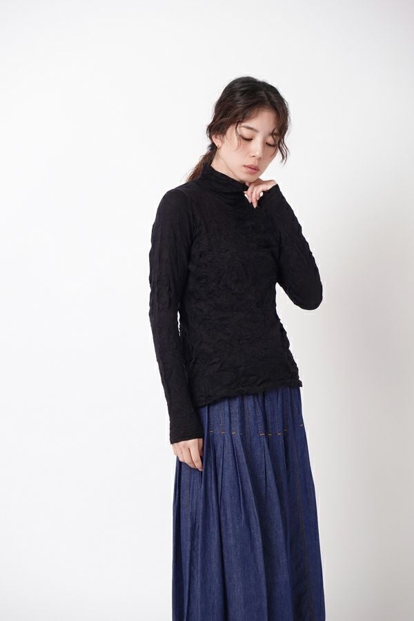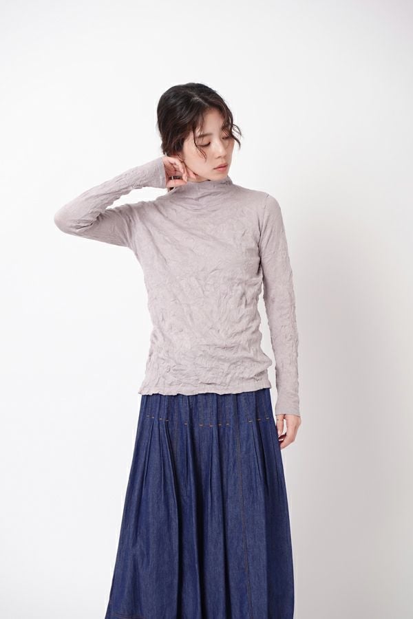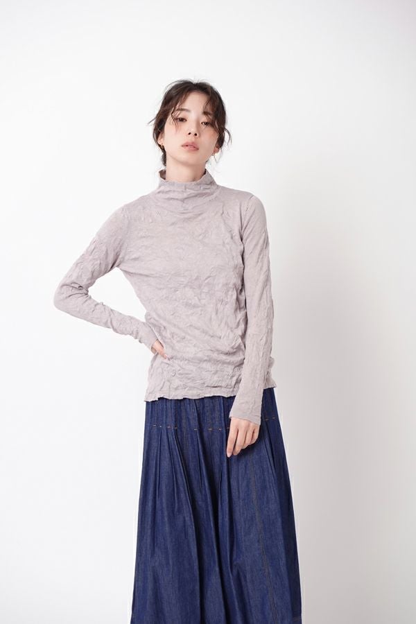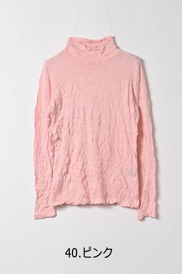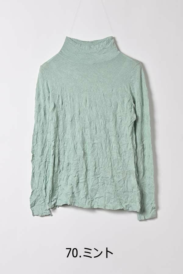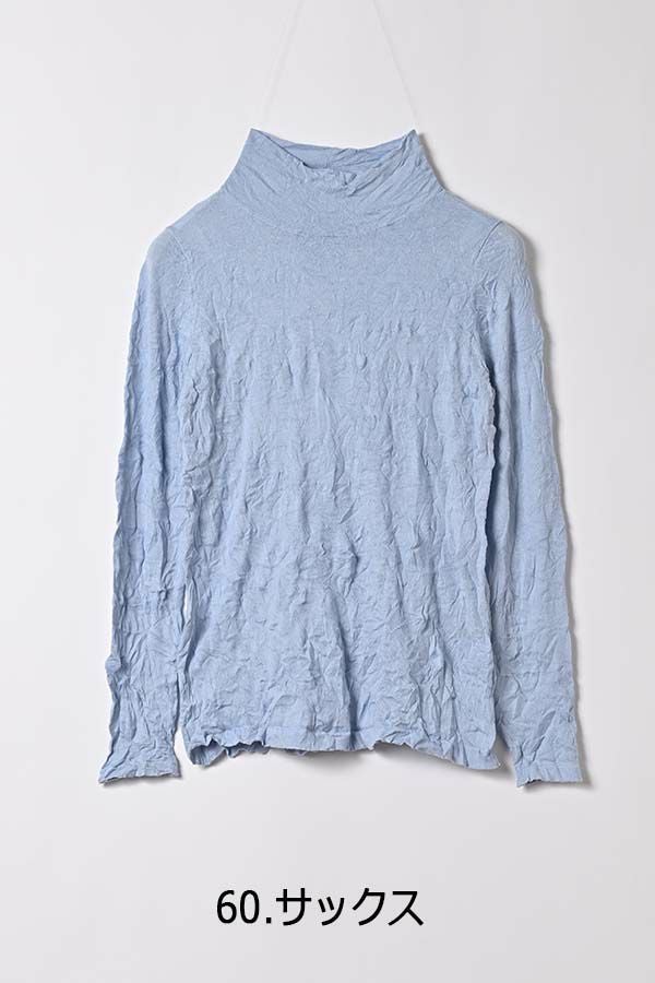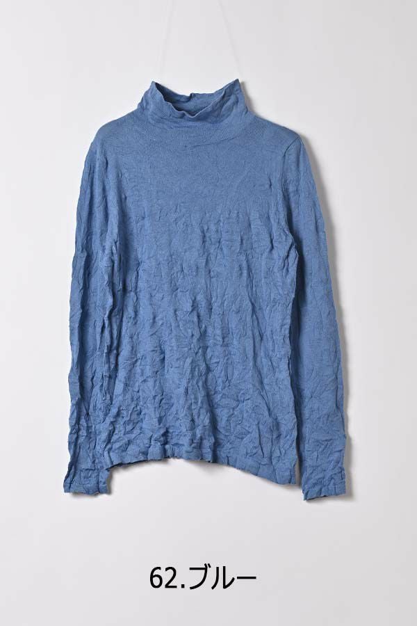 伸びも良く何度も着たい優しい肌触りのシワ加工プルオーバー 肌触りの良い綿ポリエステルの素材で、真夏以外年中着用可能な素材です。チクチクするの素材はイヤ!とおっしゃるお客様には、喜んで頂ける定番ロングランヒットの一着です。お色違いで買い揃えても後悔しません。 職人の絶妙な加減で作られているシワ加工製品は一枚一枚のシワの出方が違う希少価値の高い製品です。ランダムに入るシワによって体型が出にくい外観にもなっています。 衿の高さは、高すぎず低すぎない実用かつ、オシャレに着こなせる衿元を実現。色々なアイテムの着合わせに最適です。綿とポリエステルの混紡素材で、ソフトな肌触り。 シワ加工に必ず必要なポリエステルは、ポリステルの特徴である熱に強く一度熱で変形させると元に戻らない性質を利用。ポリステルの混率が高いほどシワ加工のセット性も高くなります。今回ポリエステルの特性を生かして肌に優しい天然繊維の綿素材との混紡素材で市場では少ないシワ加工のセーターを作りました。