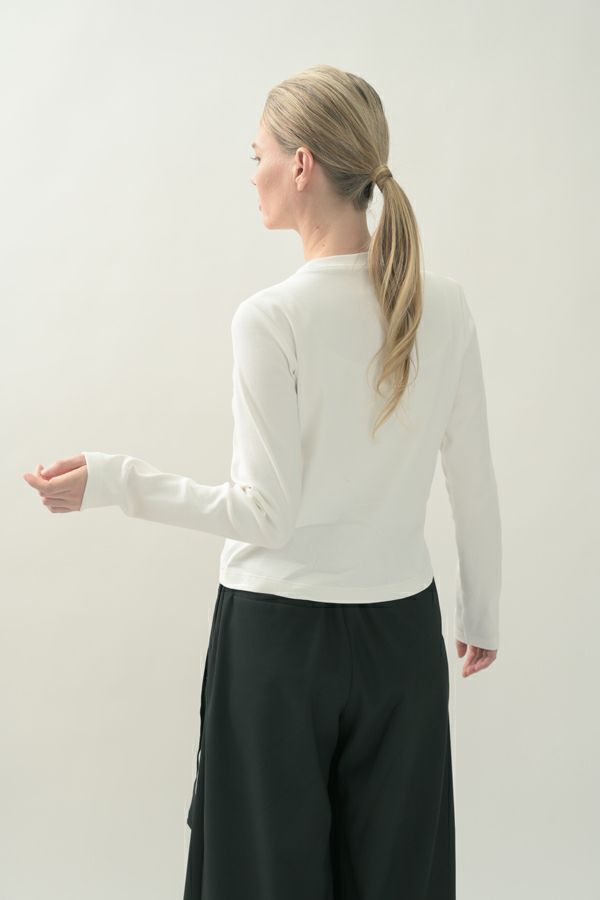 オーバーサイズのスウェットをぱつっと切ったようなデザインが可愛いショートスウェット。 コンパクトめな着丈にワイドサイズのバランスが新鮮な印象に。両脇に入った深めのスリットと左袖に入ったロゴプリントはあえて後ろよりに載せてBACKデザインを意識しました。 さっと着るだけでフォルム感があるので着映え力も抜群な一枚です! 1枚で着用するのはもちろん、シャツとレイヤードさせれば『こなれ感』のあるコーディネートが完成します。