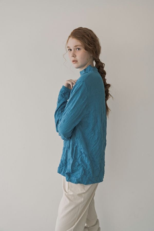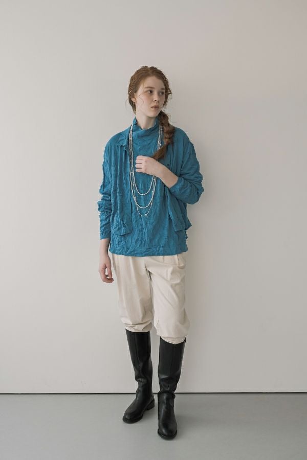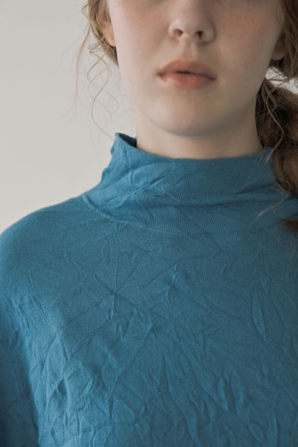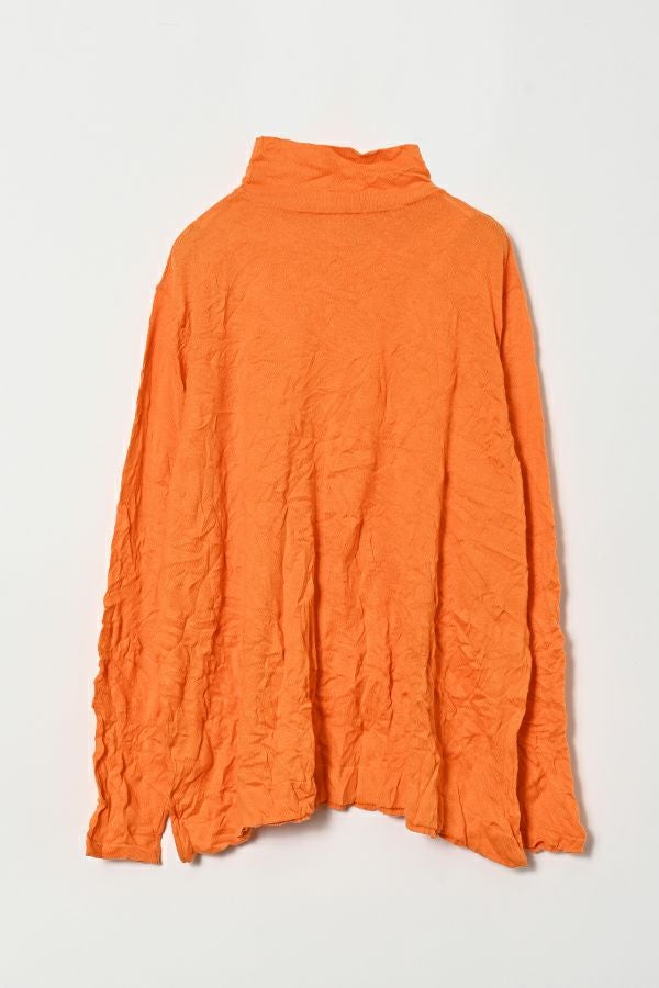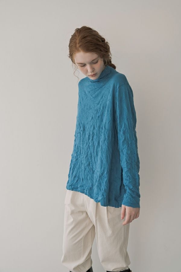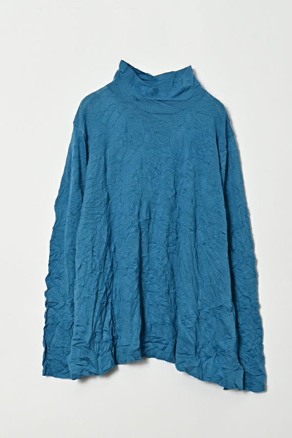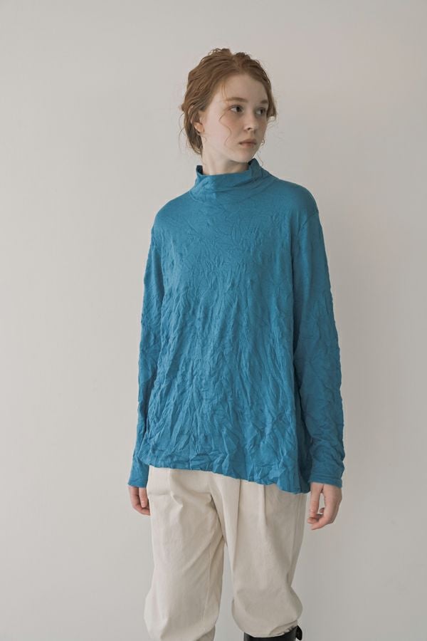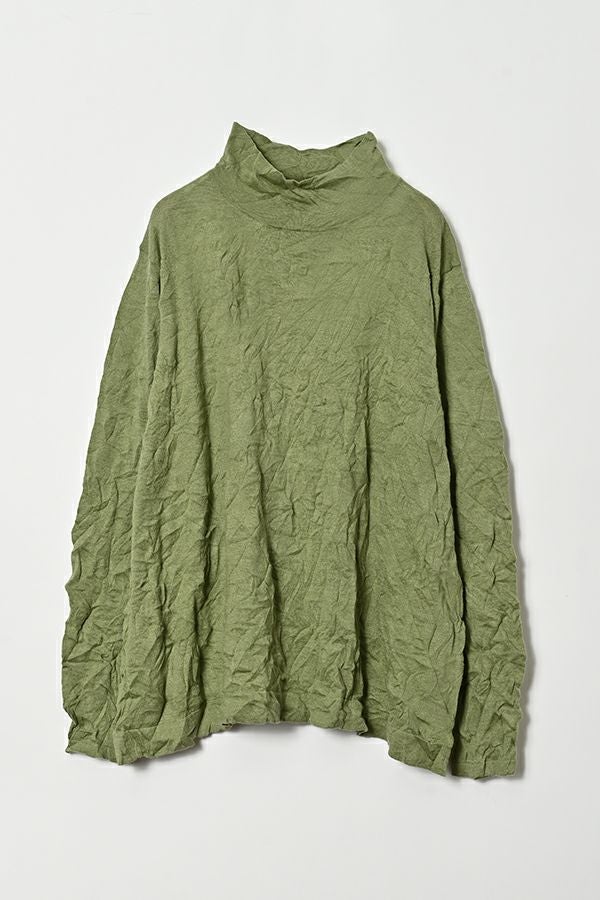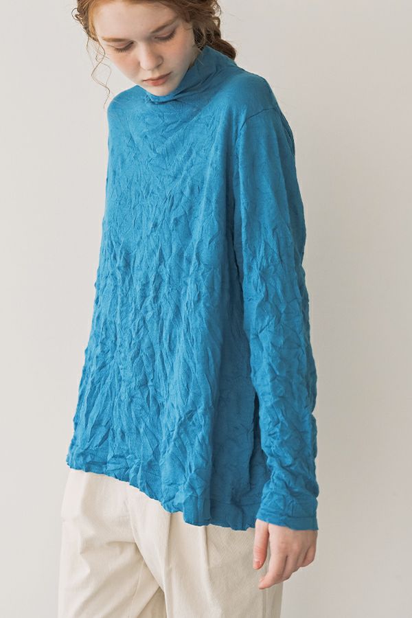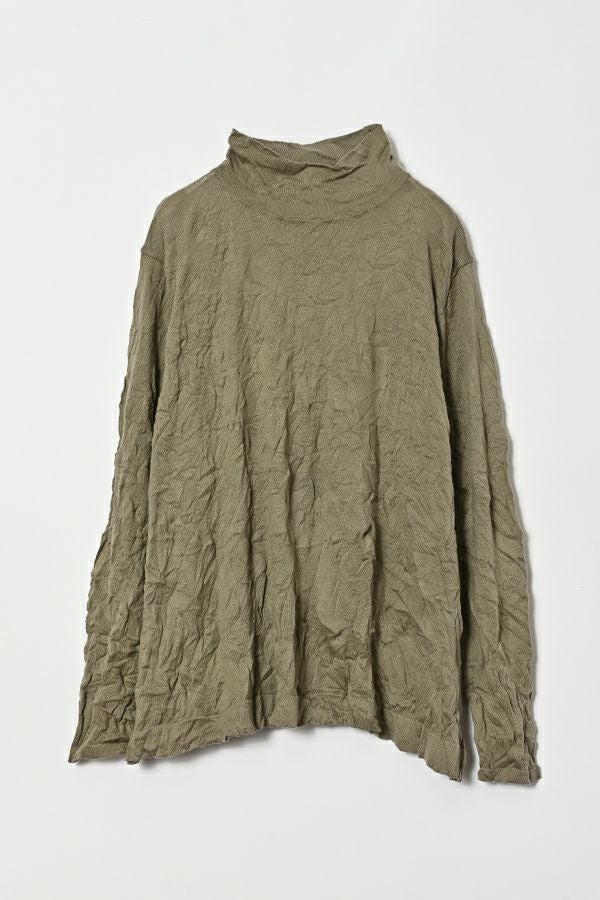 ほどよいボリューム、計算されたシルエット。 毎年人気のシワ加工のAラインシルエットのプルオーバーです。 肌触りの良い綿ポリエステルの素材でワンピースやニットのインナーとして着用してもチクチクせずに着心地良い、ずっと頼れる定番アイテム。 衿はゆったりとしたハイネックにボディーラインの出ない程よいゆるさ設定することでインナー感をなくしました。シーズンレスで大活躍のアイテムです。 様々なアイテムのインナーに使いやすいためレイヤードスタイルには欠かせません。さらにレイヤードスタイルだけではなく一枚着でもお楽しみいただけます。 ①洗える! ②薄手でソフト、肌触りが良い ③元々シワが入っている為、洗いざらしのまま着用可能 ④小さくなるのでバックに入り旅行に最適 ⑤旅先やお出掛け先の気温調整にレイヤードで大活躍