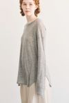 素肌が喜ぶしなやかな心地よさ、極上ウールのレイヤードプルオーバー。 今秋、新シリーズ「mocochi(もこち)」が登場。 カシミヤと同等の細い上質な羊毛、ウール100%のスーパーエクストラファインメリノを使用。通常は細くて編めないのですが、水溶性ビニロンと言う糸を補強糸に一緒に編みあげた後にお湯で水溶性ビニロン糸を洗い流すことで元糸だけが残るので混率も毛100%のままになっております。 肌に触れるアイテムなので自分自身を大切に思いやった一着です。シンプルなデザインなのでインナー使いに便利で、ニットを上に重ね着してラウンド裾を覗かせたレイヤードコーデもお楽しみいただけます。 【ウールの優れた特徴】 ◎保温性に優れています。 ◎吸湿性・発散性に優れています。 ウールは汗を吸収すると同時に素早く発散。蒸れを抑え快適な状態を保ちます。 ◎防臭・抗菌効果 ◎肌に優しい 湿疹やアトピー性皮膚炎の患者さんに症状軽減をもたらす実験効果があります。 ◎地球に優しい ウール100%は天然で再生可能です。 同じmocochi(もこち)シリーズのトッパーカーディガン(25228-3400Q-R)を上に羽織ったコーデもお薦めです。 ●非常にデリケートな素材ですのでアクセサリー等の引っかけに注意して下さい。●糸及び編み組織の特性上、下垂れしやすいのでハンガーには掛けず、畳んだ状態で保管して下さい。 ●手洗い可
