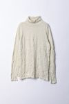 肌触りの良い綿ポリエステルの素材で、真夏以外年中着用可能な素材です。チクチクする素材はイヤ!とおっしゃるお客様には、喜んで頂ける定番ロングランヒットの一着です。 お色違いで買い揃えても後悔しません。 ①洗える! ②薄手でソフト ③肌触りが良い ④元々シワが入っている為、洗いざらしのまま着用可能 ⑤小さくなるのでバックに入り旅行に最適 ⑥色展開が豊富 これが長年愛され続ける理由です。上に何でも重ねられ、衿の高さやフィット感が着こなしをオシャレに仕上げてくれます。 職人の絶妙な加減で作られているシワ加工製品は一枚一枚のシワの出方が違う希少価値の高い製品です。 ランダムに入るシワによって体型が出にくい外観にもなっています。伸びも良く何度も着たい優しい肌触りです。衿の高さは、高すぎず低すぎない実用かつ、オシャレに着こなせる衿元を実現。 色々なアイテムの着合わせに最適です。綿とポリエステルの混紡素材で、ソフトな肌触り。 シワ加工に必ず必要なポリエステルは、ポリステルの特徴である熱に強く一度熱で変形させると元に戻らない性質を利用。ポリステルの混率が高いほどシワ加工のセット性も高くなります。 今回ポリエステルの特性を生かして肌に優しい天然繊維の綿素材との混紡素材で市場では少ないシワ加工のセーターを作りました。