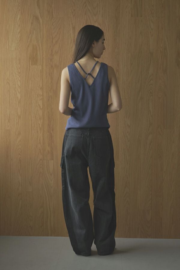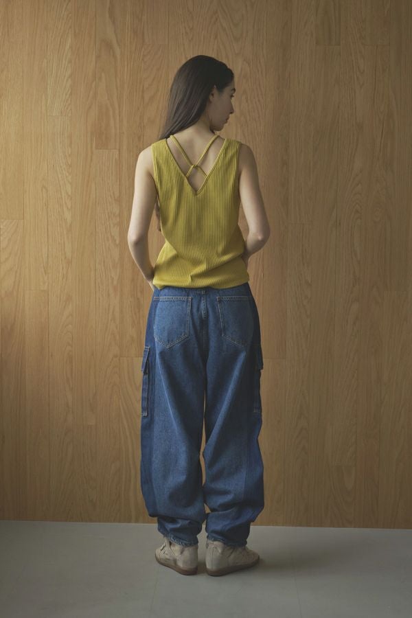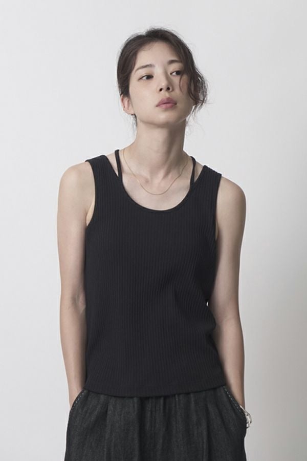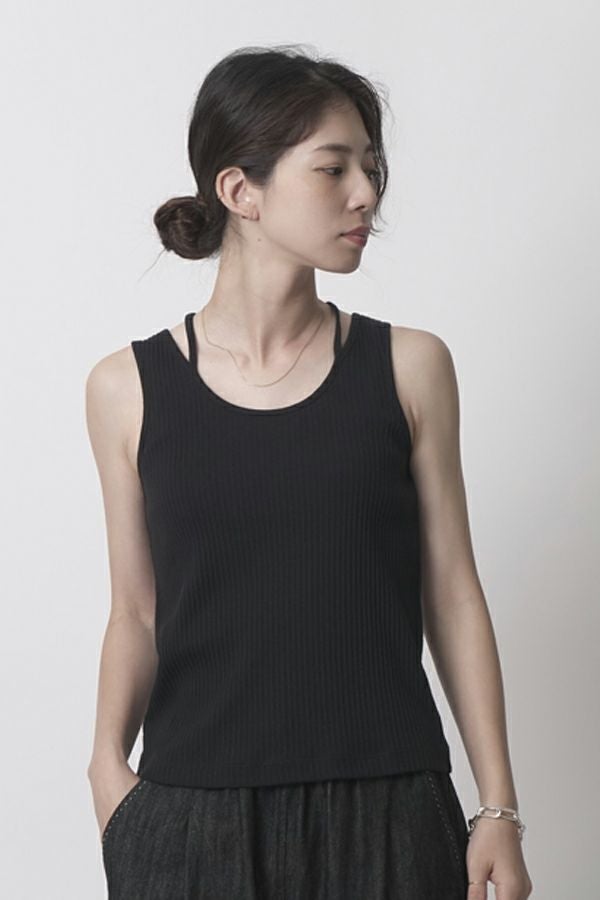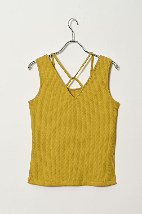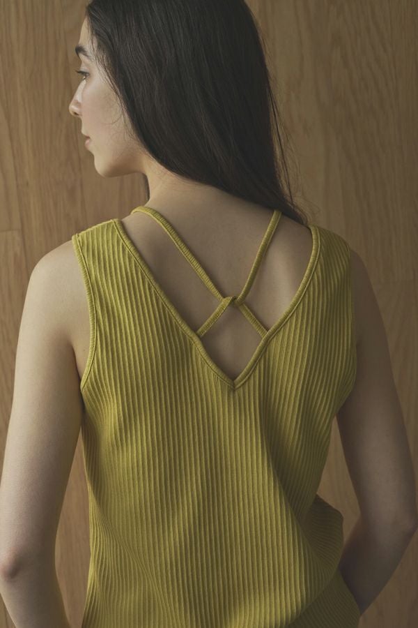 レディライクなバックシャンが目を惹くタンクトップ。 昨シーズン大好評のタンクトップが今季から「定番」として登場。そして、嬉しい2サイズ展開です。 トレンドのランダムリブ素材を使用し、共紐のバックシャンデザインがポイントとなっています。カジュアルにもきれいめにも合わせられ、上品で洗練された印象にしてくれる優秀インナー。 一枚でも着用いただけるよう、デコルテラインを綺麗に見せる首周りのあきに拘ったアイテムです。 ●日本製