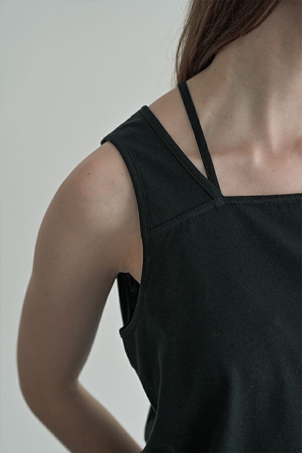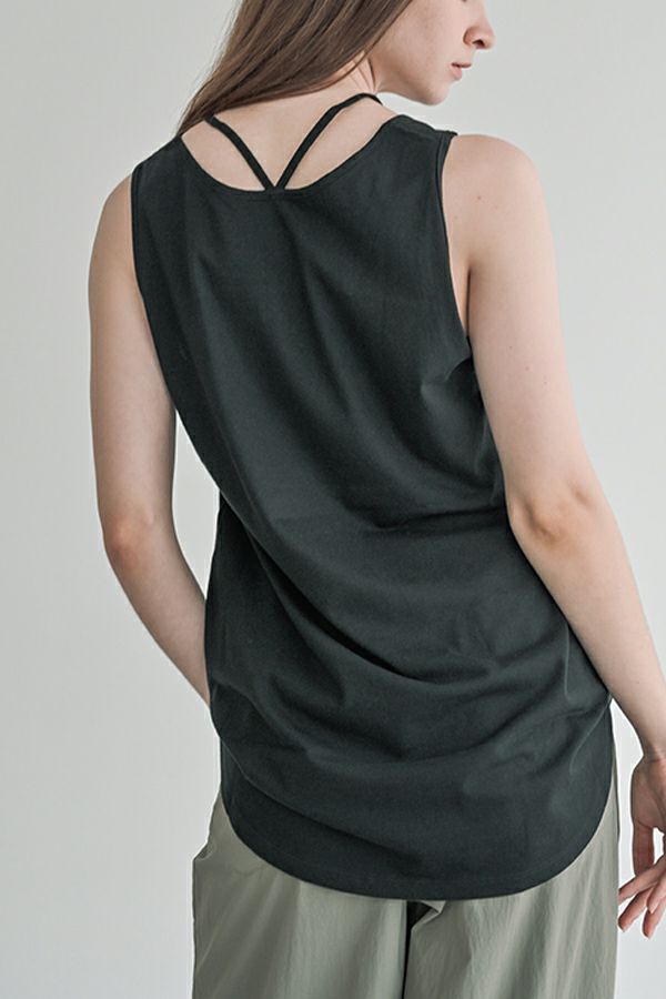 女性らしさが際立つ、定番の紐タンクトップ。 華奢な衿元が特徴のタンクトップ。前後差のついた裾が、お腹周りやヒップを美しくカバーし、スタイルアップ効果も抜群。衿開きの広いトップスの下に重ねると、チラリと見える肩紐が女性らしい印象を惹き立てます。 シンプルでありながら、シーズン問わず活躍するデザインなので、ヘビロテ間違いなしの一着です。 ●日本製