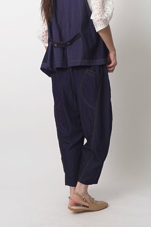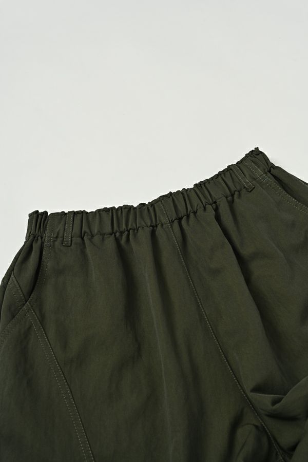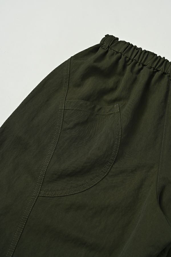 軽やかに、品よく。大人の余裕を纏うコクーンパンツ。 落ち感のあるツイル(綾)素材は、シャンブレーならではの軽やかさとほのかな艶感で、大人のカジュアルシックな佇まいを演出。 akane定番のコクーンパンツは、ゆったりとしたリラクシーなサイズ感ながら、前後に入れた縦切り替えと前のバイヤスカットが、すっきりとした印象に。裾は程よく細めに仕上げ、わたり幅にゆとりを持たせることで膝が出にくく、美しいシルエットをキープ。さらに、後ろのパッチポケットは中心に寄せて配置し、小尻見えも叶える技ありデザインです。 シンプルなトップスに合わせるだけで、ナチュラルモードな着こなしが完成する一本です。 ●配色切ベスト[クールポケット付き](25218-5681B-R)とセットアップ可
