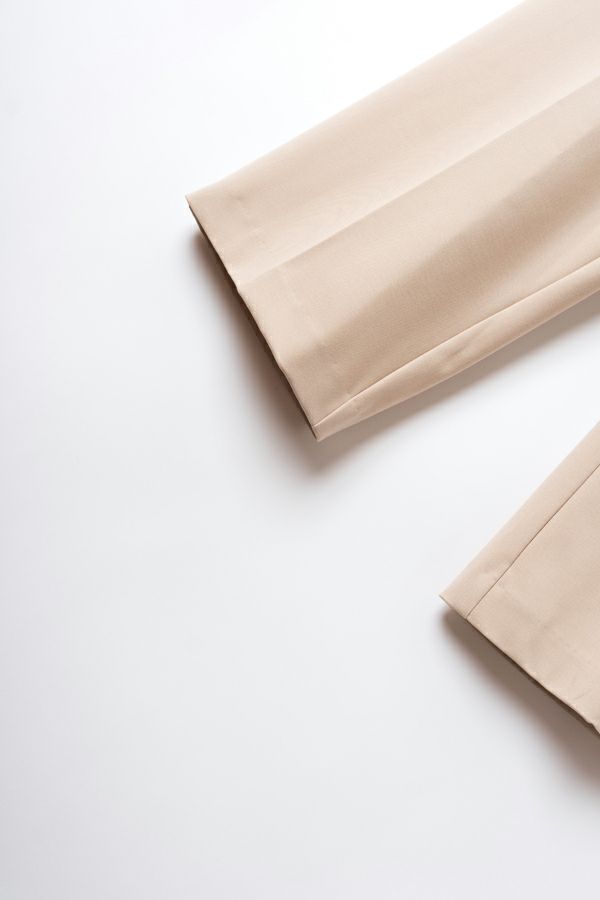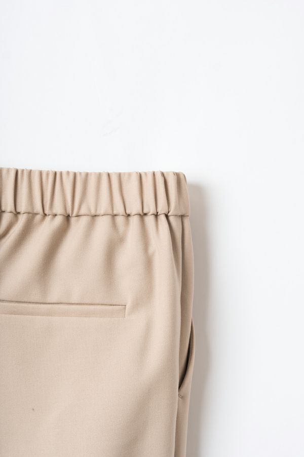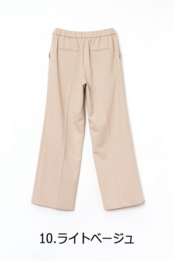 楽してきちんと見えする優秀なダブルクロスイージーパンツ。 ウエストゴム仕様で楽に穿けて、シーズンレスで使える素材。 ややベルボトムラインでセンタープレスが入った、リラックス感がありながらも足が綺麗に見えるシルエットに。 家庭でのお洗濯も可能も嬉しいポイント。