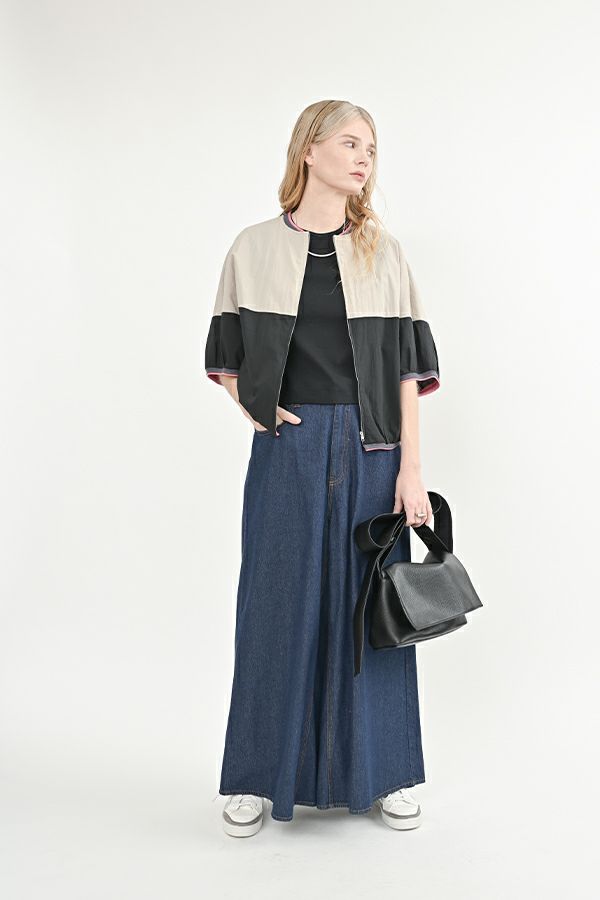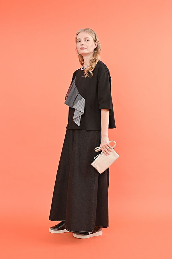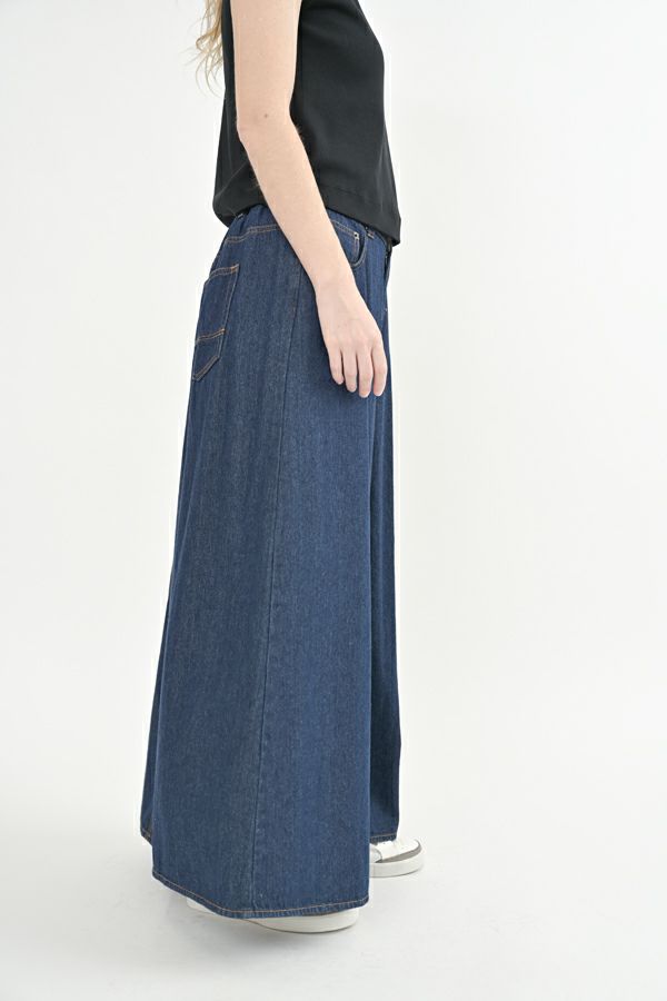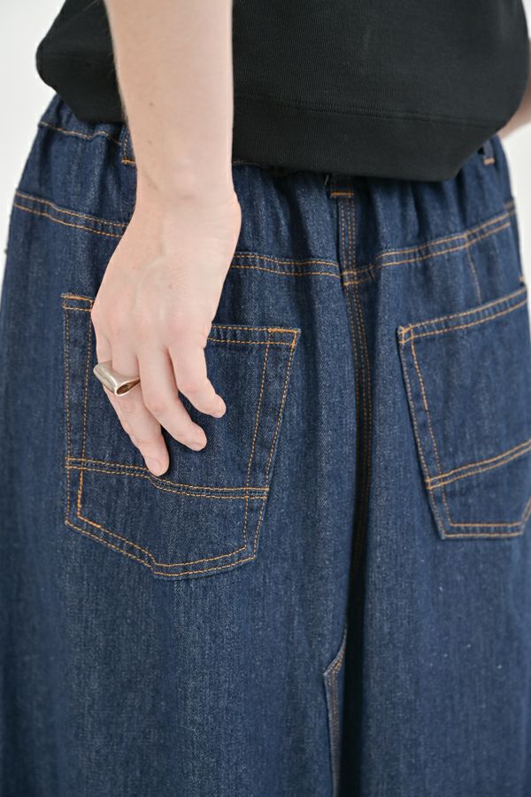 前から見るとワイドパンツ、後ろから見るとAラインスカートになっているデザインパンツ! 後ろはゴム仕様になっているのでラクチン!なのにオシャレ!! 股下にステッチが入っているの為、生地が足の動きに付いてくるので、自転車に乗った時に車輪に巻き込まれる可能性も軽減されます。