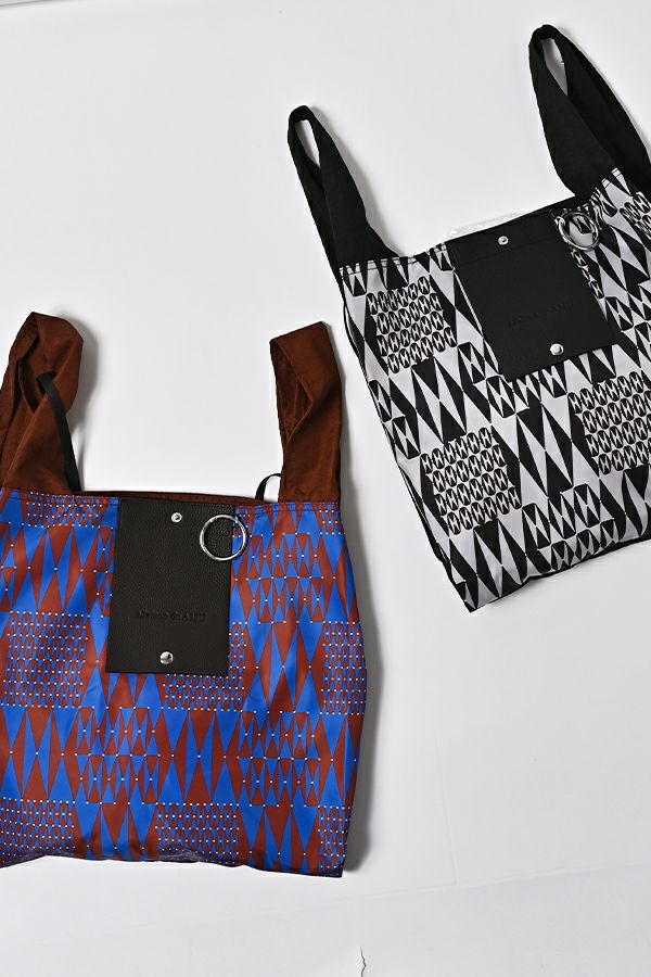 お洋服に合わせた柄を使ってオリジナルプリントをしたトートバック。 発色の綺麗な高級感のあるポリエステル素材と合わせる事でシーンを選ぶことなくサブバックとしてもまたクルっと巻いて収納ができ、キーホルダーにも付けたり、見た目も可愛いのでちょっとしたギフトにもおススメです。