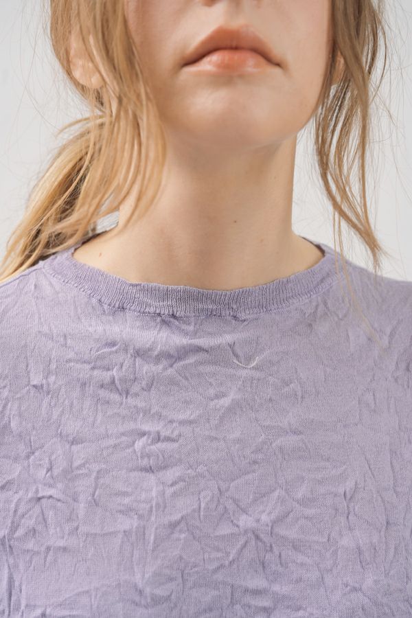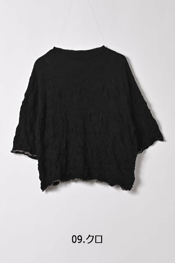 伸びも良く何度も着たい優しい肌触りのシワ加工プルオーバー 肌触りの良い綿ポリエステルの素材で、真夏以外年中着用可能な素材です。チクチクするの素材はイヤ!とおっしゃるお客様には、喜んで頂ける定番ロングランヒットの一着です。お色違いで買い揃えても後悔しません。 今回、お客様のご意見を頂いてお作りした新型ゆったりサイズのボートネック半袖が登場!肌にくっつき過ぎないサイズ感と半袖にすることで暑い時期でも着用していただけるようになりました。元々シワが入っている為、洗いざらしで着れるのも嬉しい。 職人の絶妙な加減で作られているシワ加工製品は一枚一枚のシワの出方が違う希少価値の高い製品です。ランダムに入るシワによって体型が出にくい外観にもなっています。綿とポリエステルの混紡素材で、伸びも良く何度も着たい優しい肌触りです。シワ加工に必ず必要なポリエステルは、ポリステルの特徴である熱に強く一度熱で変形させると元に戻らない性質を利用。ポリステルの混率が高いほどシワ加工のセット性も高くなります。今回ポリエステルの特性を生かして肌に優しい天然繊維の綿素材との混紡素材で市場では少ないシワ加工のセーターを作りました。
