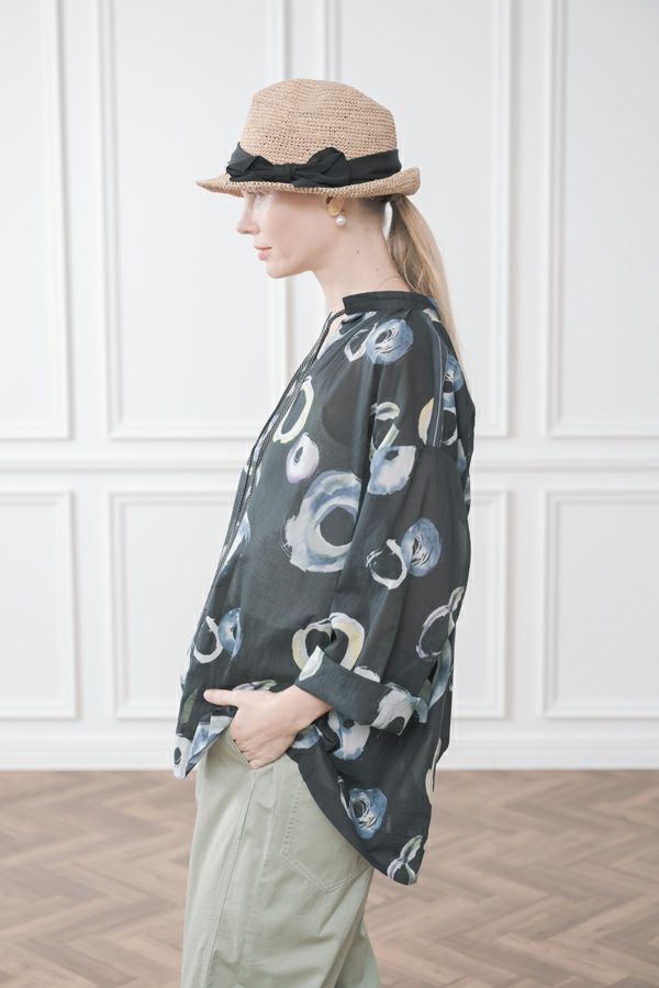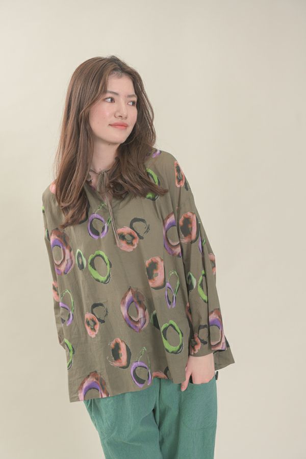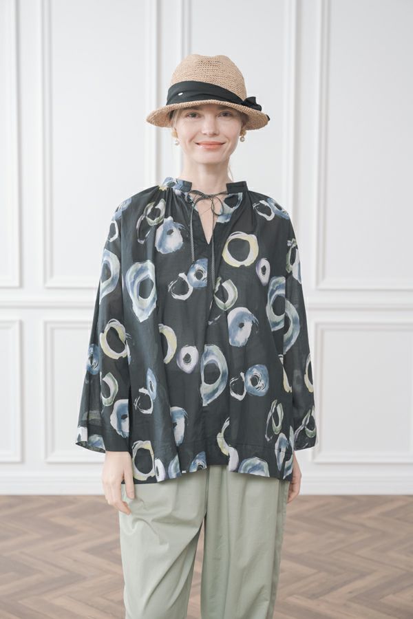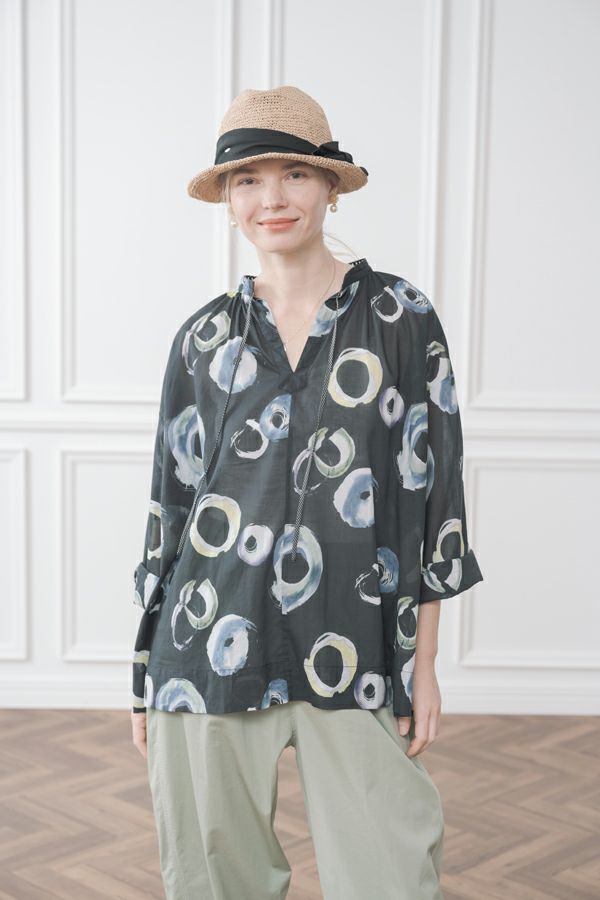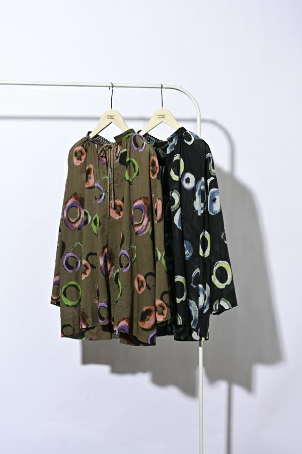サークルプリントドロストブラウス
