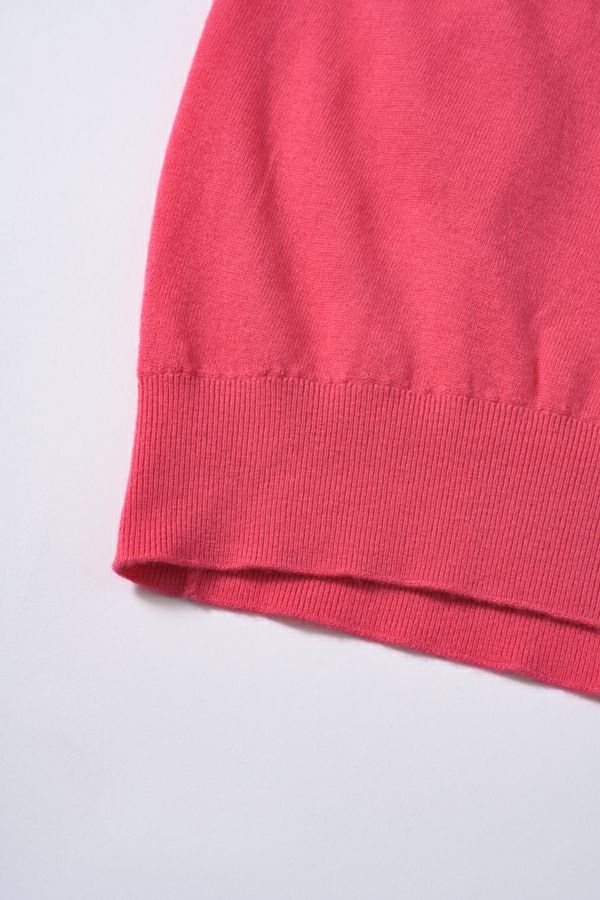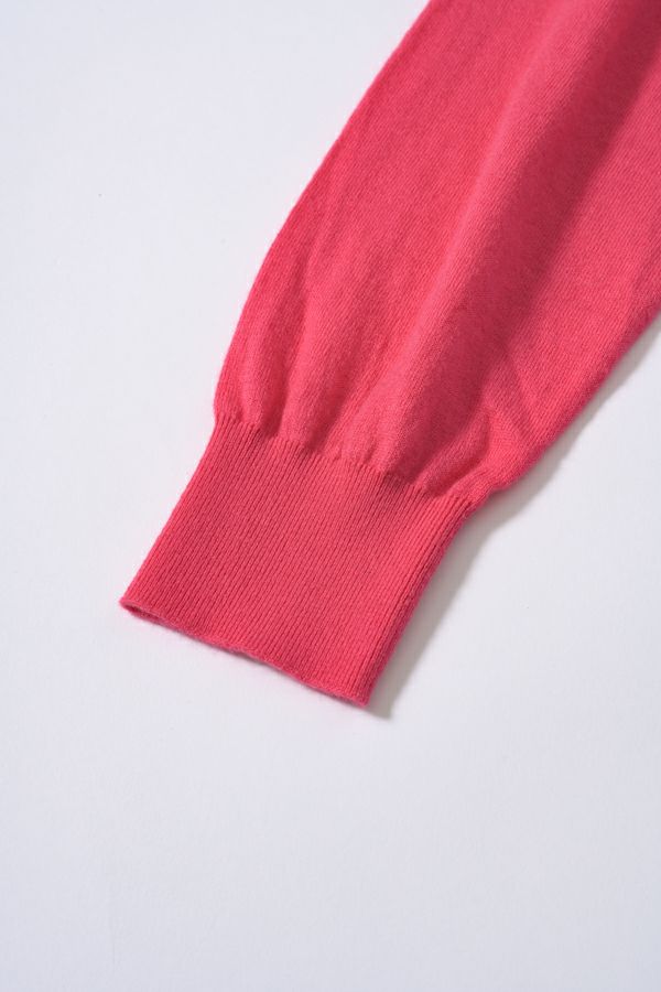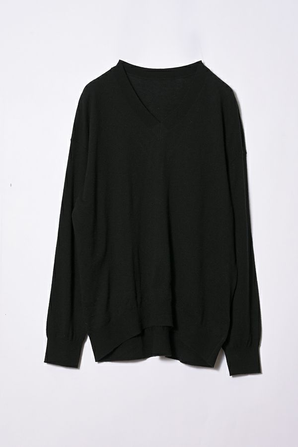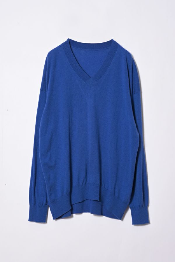 鮮やかなカラーが目を惹くシンプルデザインのVネックニット。 程よくゆとりのあるシルエットに肩をドロップすることで抜け感をだしつつ、前後差のある着丈が女性らしい印象をプラスしています。首元は開きすぎないのでさっと1枚でサマになり、テイスト問わずに着られるのでヘビーローテーションで活躍するニットです。 ボトムスを選ばず、スカートやパンツスタイル、ワイドシルエットのパンツやタイトなスカートにも合わせられます。ジャンパースカートやサロペットのインナーとしても、大人のカジュアルスタイルになじむので重宝します。 秋の装いに寄り添うデイリーに活躍するアイテム。