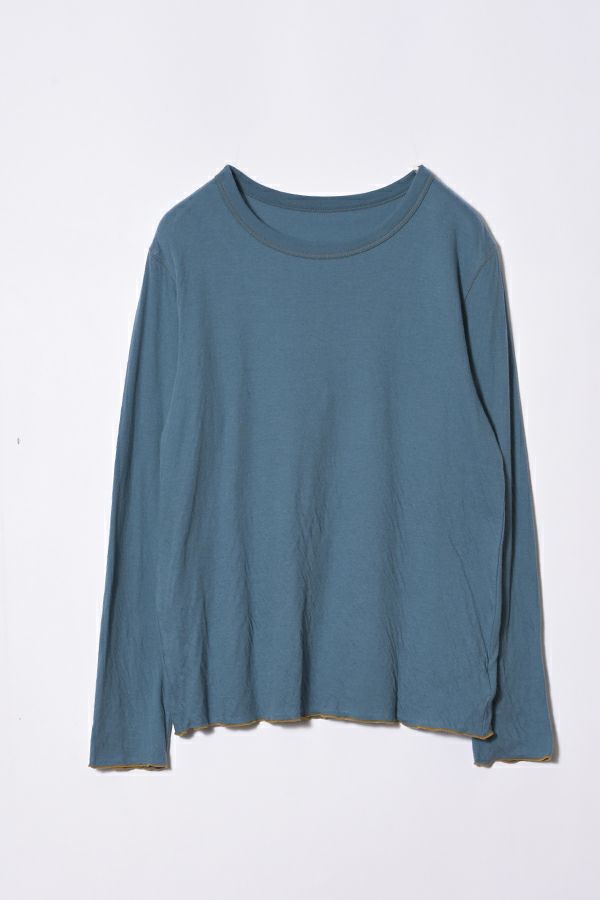 Violette 定番アイテムのゆるふわタートル(24225-1572Z)のクルーネックバージョンの登場。 詰まりすぎてないネックラインはインナー使いとしても重宝するアイテム。接結素材はとても柔らかく、素肌に着用しても肌触りのいい風合いです。 ステッチや袖口のカラーなどが配色になっており、シンプルなアイテムですがポイントの効いたデザインになっています。