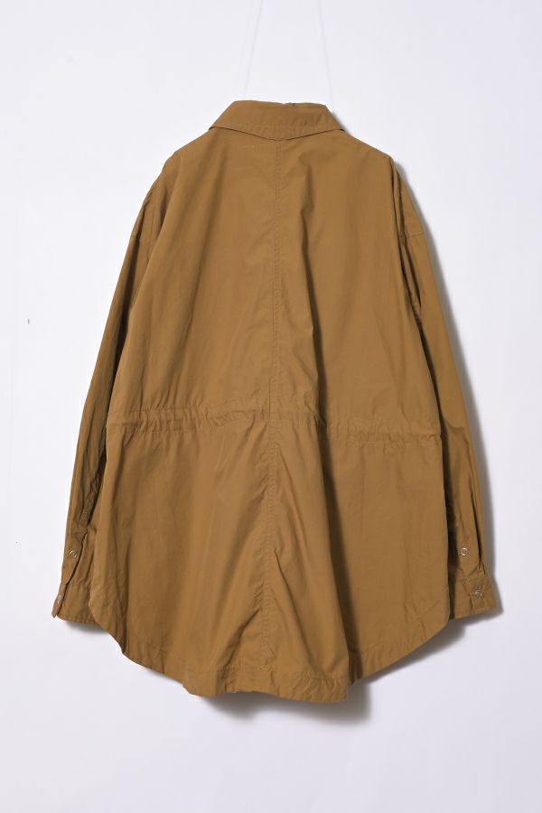 メンズライクなカッコ良さが目を惹くミリタリーシャツ。 少しハリ感のあるウェザー素材を使用したアイテムはモッズコートをベースにデザインしています。脇のポケットやウエストコードなどが大きな特徴です。 程よいゆとりのあるシルエットは、シャツジャケットぽく着てもらうことも出来、長いシーズン愛用してもらえるアイテムになっています。 ●同型でストライプタイプ(24225-4657WH)も有。