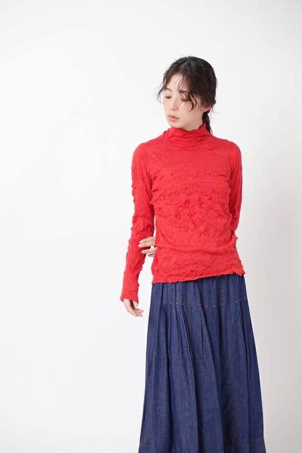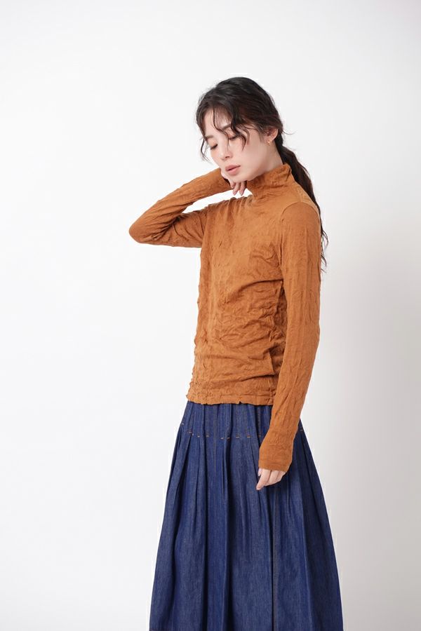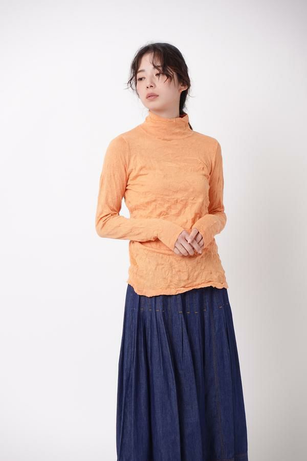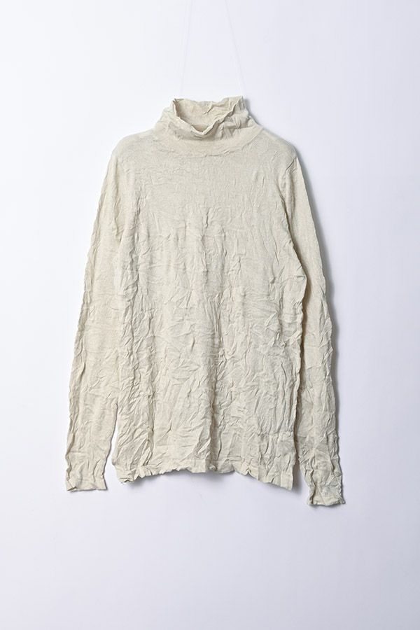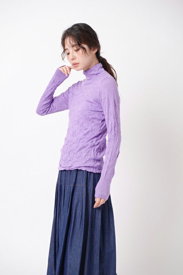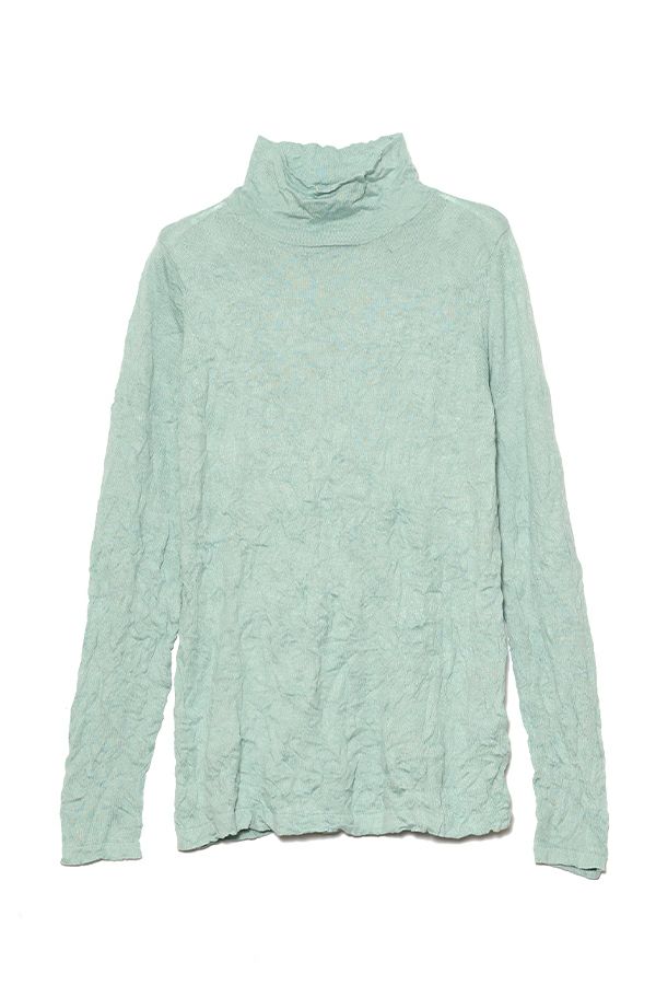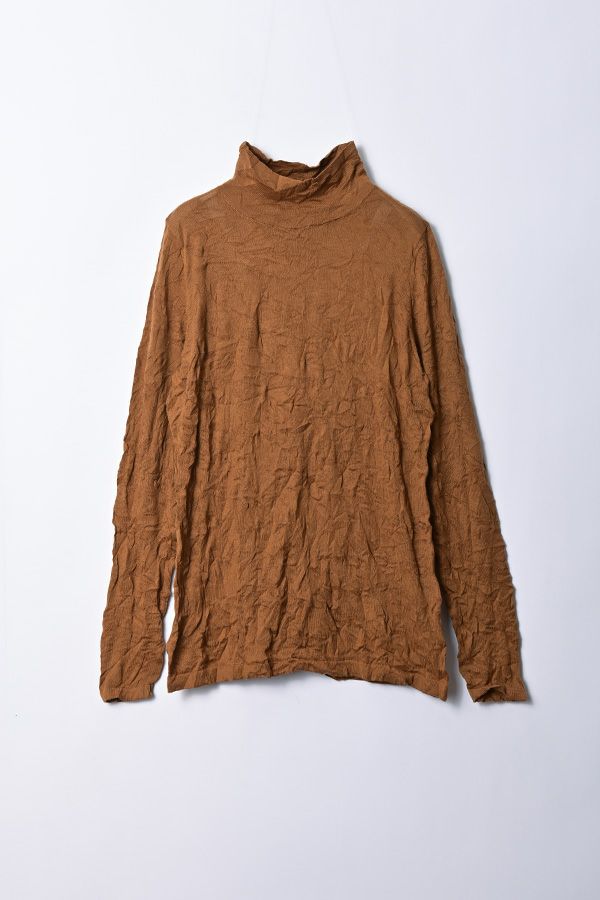肌触りの良い綿ポリエステルの素材で、真夏以外年中着用可能な素材です。チクチクする素材はイヤ!とおっしゃるお客様には、喜んで頂ける定番ロングランヒットの一着です。 お色違いで買い揃えても後悔しません。 ①洗える! ②薄手でソフト ③肌触りが良い ④元々シワが入っている為、洗いざらしのまま着用可能 ⑤小さくなるのでバックに入り旅行に最適 ⑥色展開が豊富 これが長年愛され続ける理由です。上に何でも重ねられ、衿の高さやフィット感が着こなしをオシャレに仕上げてくれます。 職人の絶妙な加減で作られているシワ加工製品は一枚一枚のシワの出方が違う希少価値の高い製品です。 ランダムに入るシワによって体型が出にくい外観にもなっています。伸びも良く何度も着たい優しい肌触りです。衿の高さは、高すぎず低すぎない実用かつ、オシャレに着こなせる衿元を実現。 色々なアイテムの着合わせに最適です。綿とポリエステルの混紡素材で、ソフトな肌触り。 シワ加工に必ず必要なポリエステルは、ポリステルの特徴である熱に強く一度熱で変形させると元に戻らない性質を利用。ポリステルの混率が高いほどシワ加工のセット性も高くなります。 今回ポリエステルの特性を生かして肌に優しい天然繊維の綿素材との混紡素材で市場では少ないシワ加工のセーターを作りました。