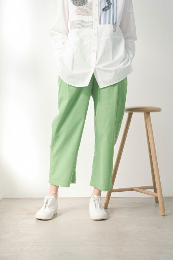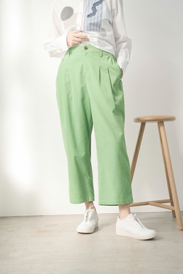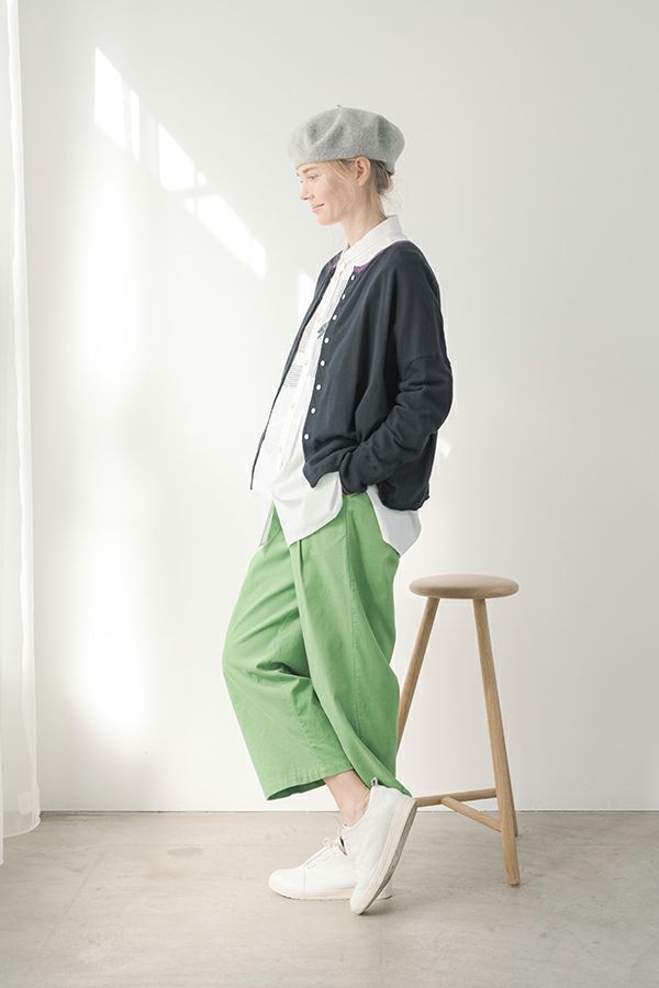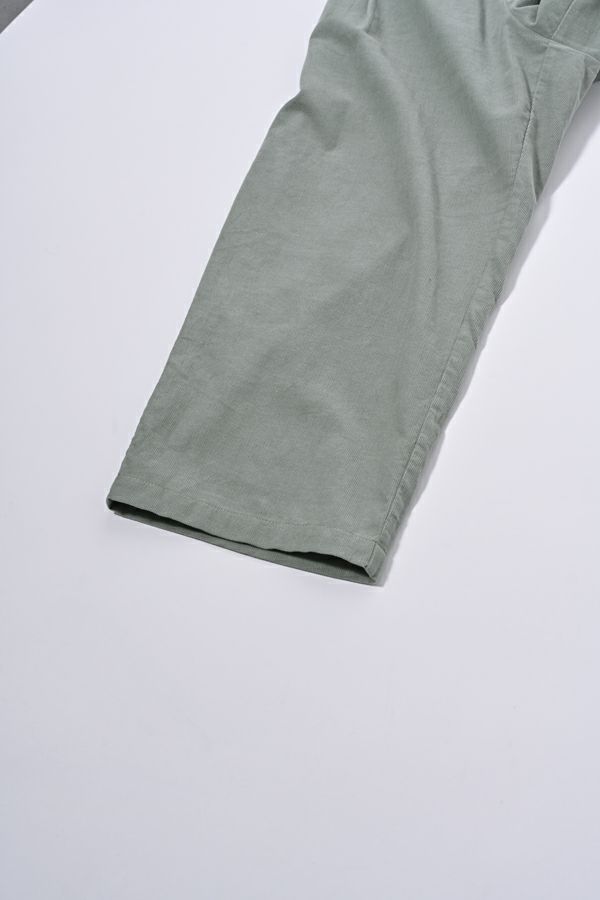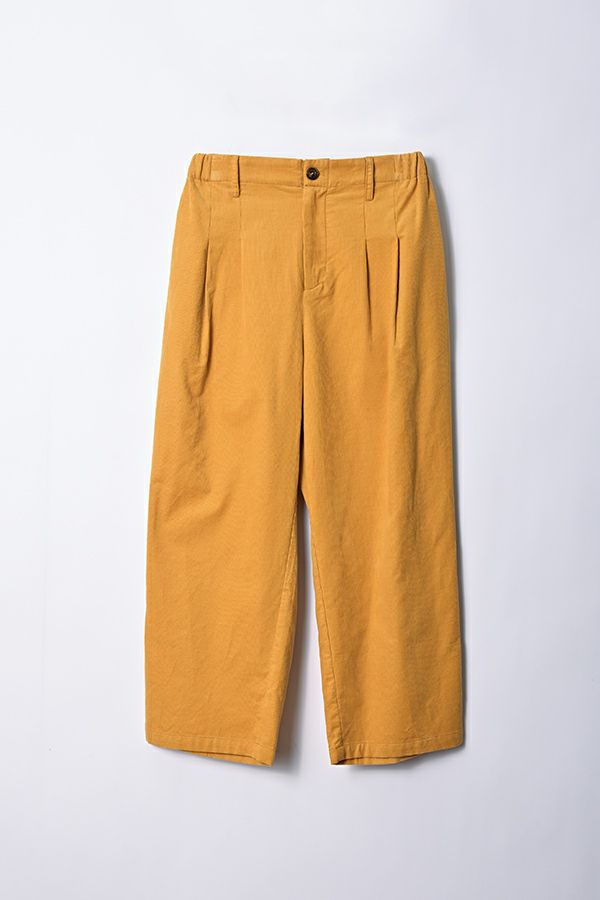 前ファスナー開きの9分丈 細コーデュロイタックパンツ。 ヒップ廻りをカバーするゆとりの4タック入りなので、履き心地抜群!裾を折り返すと脇の配色テープがポイントです。 特殊な洗い加工をして、かなり柔らかく落ち感のある風合いに仕上げています。 オフ、オレンジ、ライムグリーンなどライトカラーが新鮮な色バリエーション。 カジュアルにタウンユースや、ちょっとしたアウトドアにも使えるアイテム! ●2サイズ展開