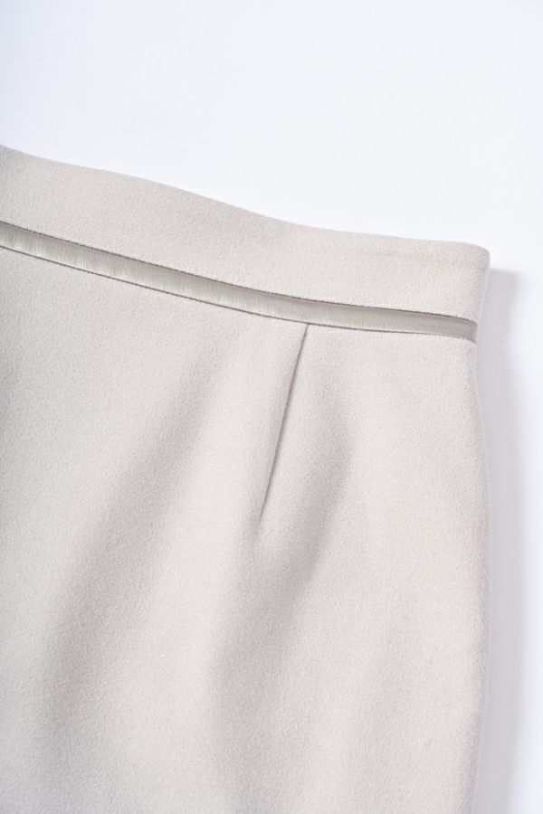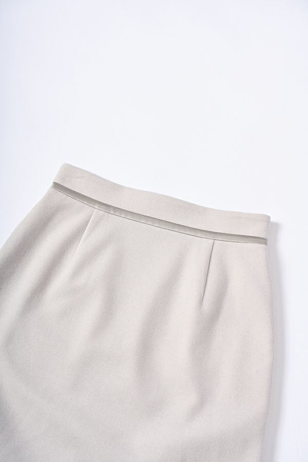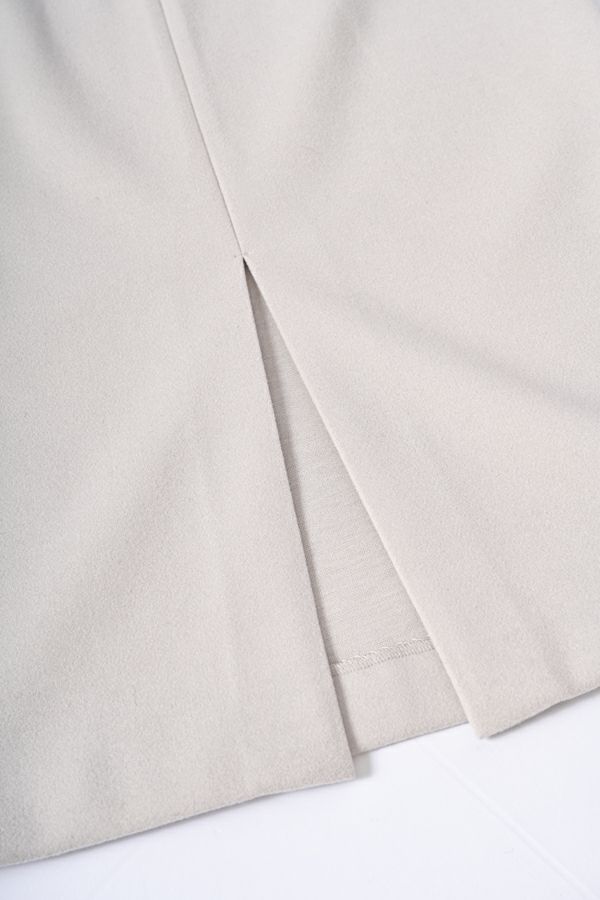 ウールタッチの大人かっこいいタイトスカート。 リアルなウールの風合いを表現したストレッチジャージー素材を使用。 ①軽くてストレッチが効いているので動きやすい ②シワになりにくい ③家庭でお洗濯もできる とても扱いやすいのが特徴です。 ウエスト切替え部分は高級感のある光沢でレザーライクな素材でアクセントを。 シンプルなデザインですのでコーディネートもしやすく、ON/OFFどちらのシーンでも巾広くお使いいただけます。 ●同素材のショートコクーンプルオーバー(24233-1823Y)とセットアップも可(着用の際はトップスの前裾をインしたスタイリングがオススメ。) ●日本製