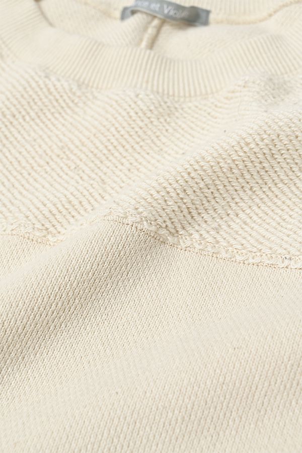 お待たせしました!追加入荷いたしました。 『ダボっと』したシルエットが可愛いトリニティ裏毛のプルオーバ―。 トリニティ裏毛は表面は太番手の糸でざっくりとしたラフな表情が特徴的で、触ると柔らかくふわっとソフトな触り心地。ユニークで可愛く、裏面と表面とで表情の違うこの生地を活かすために、両面使いのデザインにしています。 古着のスウェットなどに見られる、肩線のないディテール。 袖はあえて長くし、折り返して着ることによって、この生地をより楽しめます。 男性でも着用可能なユニセックスサイズです。 ●日本製