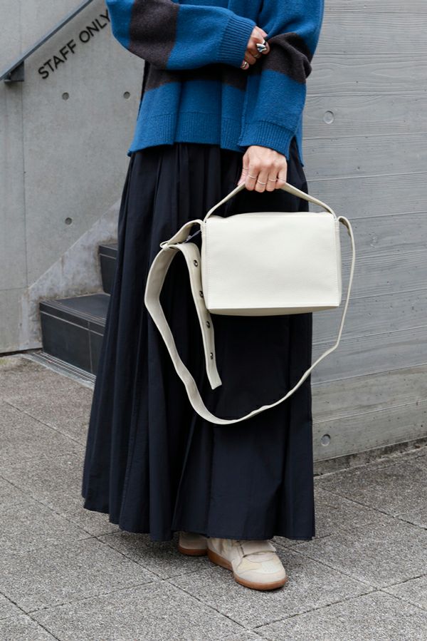 ご好評につき、春も追加販売が決定!!!!!! ショルダー部分が長さ調整可能!BOXタイプのボディショルダー。 素材はシュリンク型押しの本革を使っていますので、高級感があります。太いショルダーで調整可能なので、斜め掛けもボディショルダーにもなり、スタイリングに合わせた持ち方が出来るのが嬉しいポイント。 外観に切り替えを入れないことでシルエットを柔らかく仕上げています。使いやすい2色展開です。