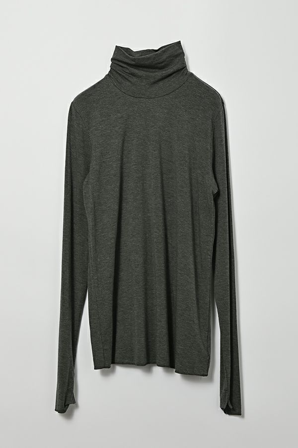 この春は新色が加わりさらに加速!ANGELINA定番タートルネックロンTEE。 ぬめり感のある上質なテンセルで編まれたベア天竺です。 しっとりした肌触りでとでも柔らかく、保湿性、吸湿性を持ち速乾性が高い素材なので一日中快適なまま過ごせます。絶妙な透け感が洗練された大人な印象を与えてくれます。 シアー素材は色ものでも強くなり過ぎず着回しも利くので、差し色として取り入れても上品さを保ち、ベーシックカラーは統一感を持たせるアイテムとしても◎長めに設定した袖丈は自在に設定出来て万能です。袖口のスリットのさりげなさが使えます! ジャケットなどトラッドなスタイリングにシアーのインナーを合わせることでソフトなイメージを与えてくれます。カジュアルなトレーナーなどとレイヤードする場合は袖口からフリルっぽく見せるディテールコーデで女性らしいワンポイントに。 ●日本製