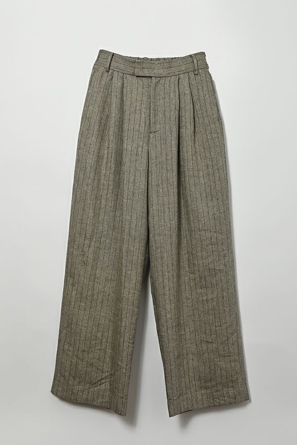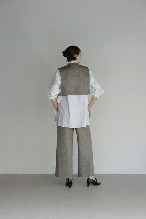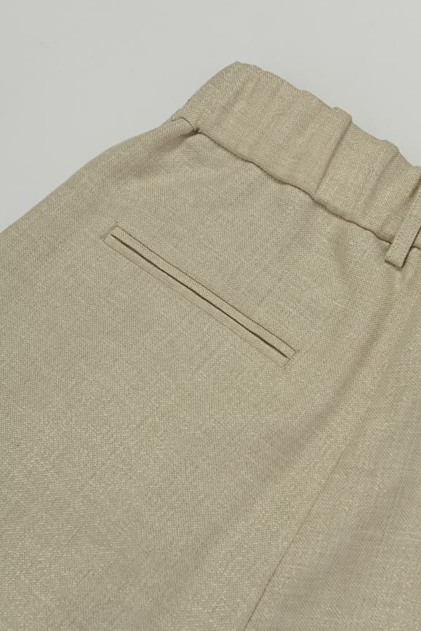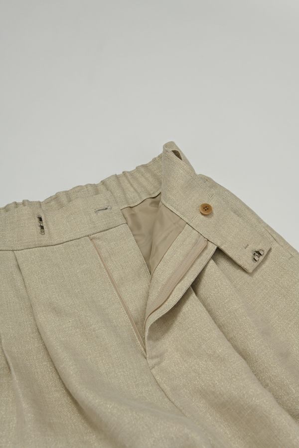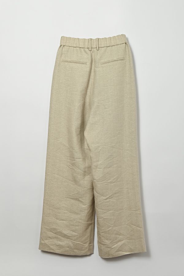 拘りが光るラグジュアリーなワイドパンツ。 リネンのナチュラルなフシを活かしたツイルの表面感と、リネンの持つ清涼感にラメ糸を打ち込んだ素材です。【 同品番で無地ベースとストライプベースの2パターン展開。】 印象的な素材なのでデザインはシンプルに、シルエットはボリューム感を持たせたワイドストレートに仕上げました。 シンプルなトップスでも決まりますし、袖にボリュームのあるようなフェミニン要素のあるトップスとのコーディネートもおすすめです。バッグやシューズに皮素材のものを合わせれば甘くなり過ぎなくて◎ ●2サイズ展開 ●同素材でラメリネンベスト(25153-5018Y)も有。 ●セットアップ可 ●日本製