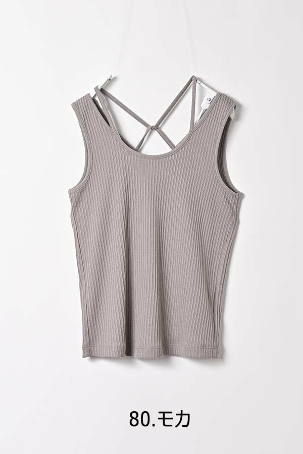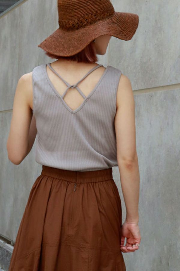 レディライクなバックシャンが目を惹くタンクトップ。 昨シーズン大好評のタンクトップが今季から「定番」として登場。そして、嬉しい2サイズ展開です。 トレンドのランダムリブ素材を使用し、共紐のバックシャンデザインがポイントとなっています。カジュアルにもきれいめにも合わせられ、上品で洗練された印象にしてくれる優秀インナー。 一枚でも着用いただけるよう、デコルテラインを綺麗に見せる首周りのあきに拘ったアイテムです。 ●日本製