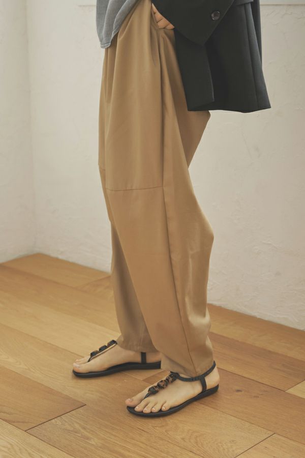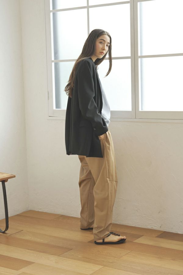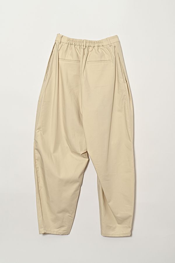 カジュアルときれいめの両方の顔を持つ万能コクーンパンツ。 環境にも配慮したリヨセル系のセルロースを使用したチノ素材です。リヨセルはレーヨンに比べて湿潤時の強度が3倍もあるといわれており、収縮も少ないので家庭でもお洗濯頂けます。 コクーンは幅広い世代、スタイルの方に合うシルエットです。カジュアル要素も強いですが、素材をきれいめにすることで綿100%とは違う表情を持っています。 シンプルにシャツなどを合わせてクールな装いもスマートに決まりますし、カットソー合わせでも足元を少しフォーマルにするだけでカジュアルになり過ぎないMIXコーデが完成します。 ●手洗い可