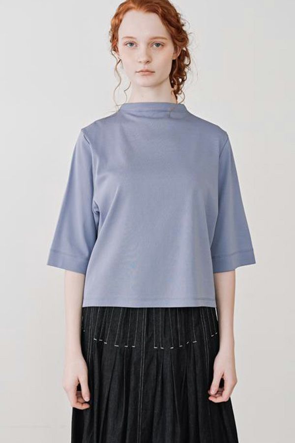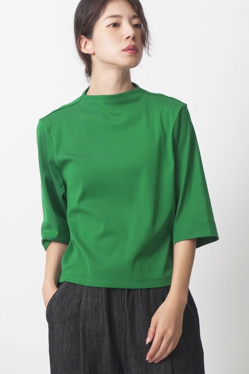 サラッと快適な涼感、大人の定番プルオーバー。akane夏の定番素材「グレシャスクール」は接触冷感で快適、上品でリラックス感のあるカットソー素材です。 気になる首周りは日焼け防止も兼ねて低いボトルネックでカバー。長めの5分袖に、程よいゆとりのサイズ感が特徴。肌にまとわりつかない素材なので、暑い時期に一枚着としてスタイリング可能。 発色がきれいなのでコーディネートのアクセントにピッタリです。カラバリ豊富な11色展開。 GRECIOUS COOL(=グレシャスクール) 独自の加工工程によって繊維を芯から改質し、膨らみと滑らかさを備えた新しい加工技術です。様々な工程の組合わせにより完成した生地で、物性安定・美しい光沢・発色性UP・キックバックの向上が特徴です。 ●日本製