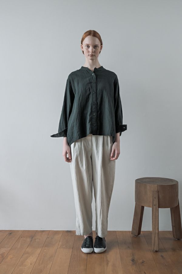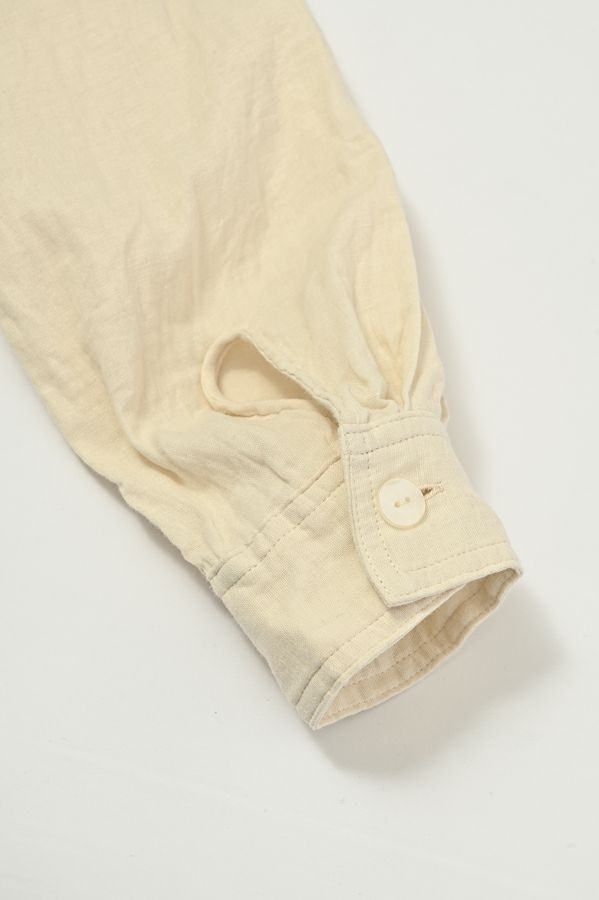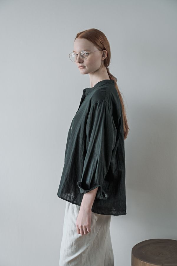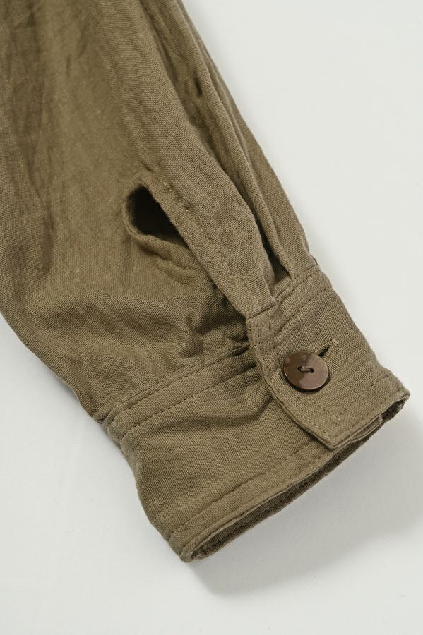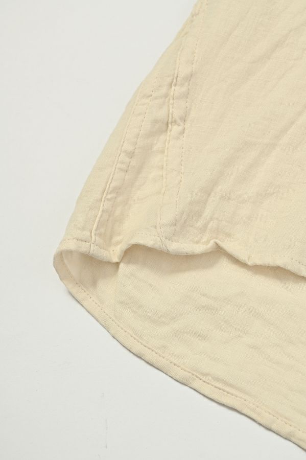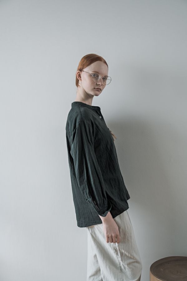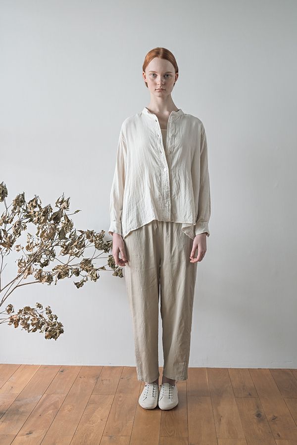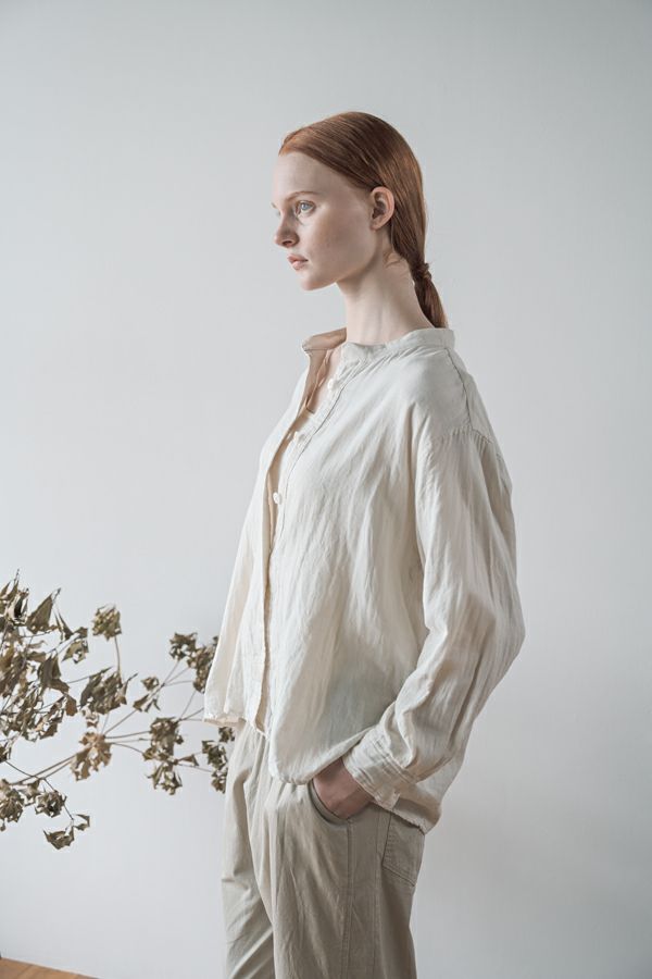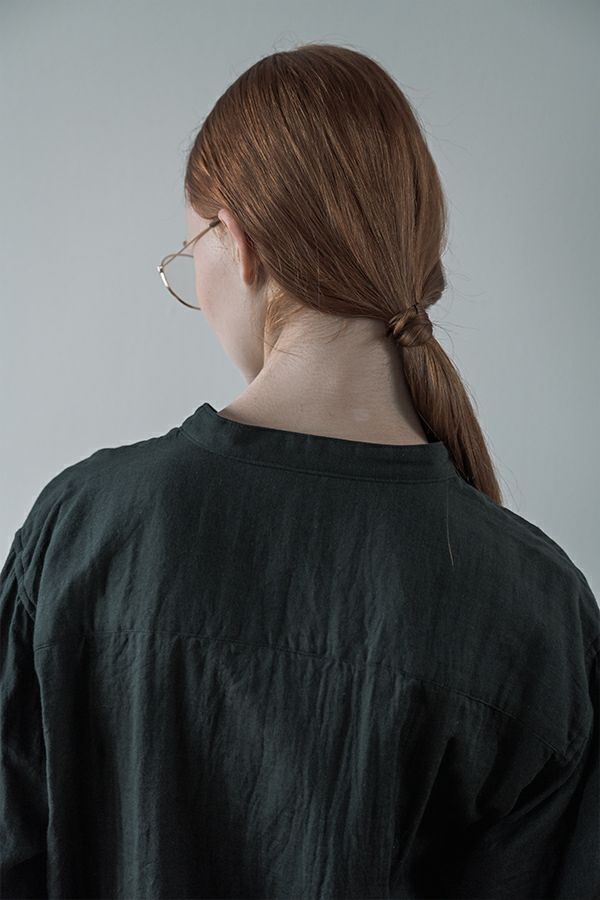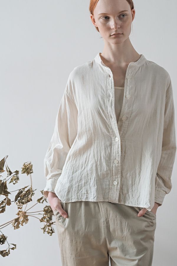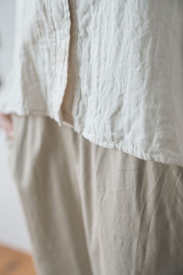 デリケートなお肌の方にも安心の着心地を提案、ナチュラルなソフトシャツ。 今夏から新シリーズの「BINKAN-SAN」 *カサカサした乾燥肌 *ホルモンバランスや季節によってゆらぐ肌 *アレルギーの痒みや肌トラブル *静電気の刺激で痒みやチクチク ずっと敏感肌で悩んでいたデザイナー目線でデリケートなお肌の方にも安心の着心地を提案します。 素材だけでなく内側の縫製にも気遣い、一番気になるチクチク感が無く、オールシーズンにわたり、つい手に取ってしまうシリーズです。 日本製のソフトで膨らみのあるダブルガーゼ素材は、イージーケアでソフト。サラッとした肌触りが良い、自然な風合いそのまま、ノーアイロンで着用可能。ゆとりあるボクシーなセミAラインシルエットで、ポケットのないシンプルなカラーレスのデザイン。ワイドな前立てや、ボタンサイズ、裾のマチ入りなどディテールはさり気なく主張するバランスで設計されています。 シンプルなので、どんなものにも合わせやすい汎用性の高いです。1枚着はもちろん、羽織りとしてもオールシーズン使える便利アイテムです。 ●日本製