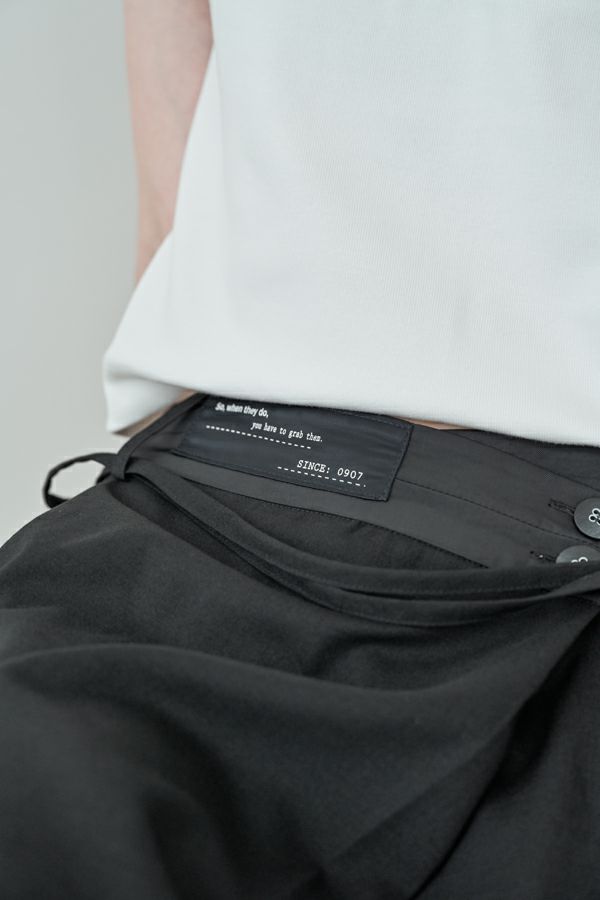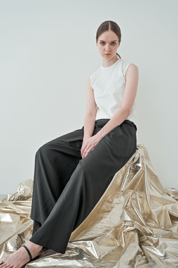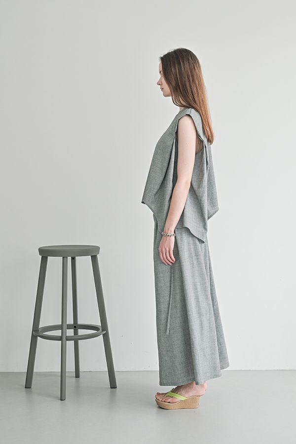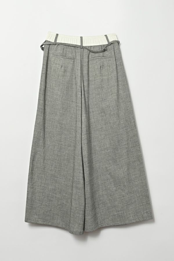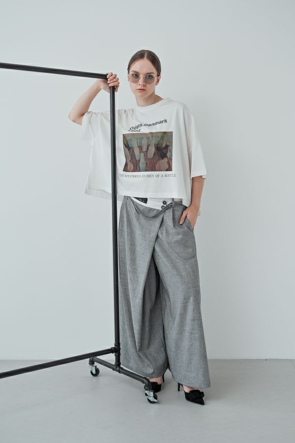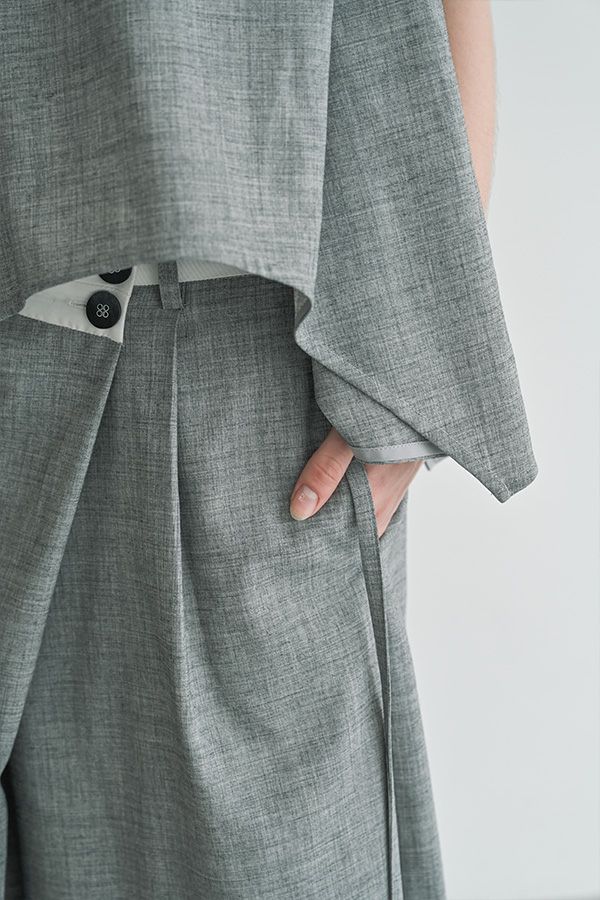 ハイセンス×こなれ感。一点投入で大人モードが叶うデザインパンツ。 「折り紙」からインスパイア。一見巻きスカート風に見える、モード感漂うデザインが目を惹く。ゆったりとしたワイドシルエットは、風通し良く清涼感ある穿き心地です。 体型カバーも兼ね備えた優秀アイテム。 そして、拘りが詰め込まれたウエストデザイン。上品なツヤ感のある素材のベルトに、エッジの効いたピスネームでアクセントを。ベルトループに巻かれた共生地の細ベルトは、ルーズに巻いてこなれ感を出したり、ラフに垂らして抜け感を出したり、スタイリングの雰囲気に合わせて遊べます。 ●同素材の折り紙ベスト(25168-5210P-W)とセットアップ可