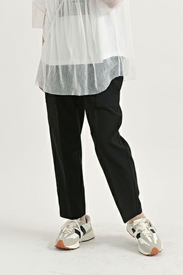 穿くだけで即美脚、涼しさと快適さを兼ね備えた極上パンツ。 縦ストレッチが効いた軽やかで涼しいジョーゼット素材のスティックパンツ。 シワになりにくく、快適な穿き心地が魅力です。 両サイドのパッチポケットがヒップ周りをカバーし、美しいシルエットを保ちながらも、楽な着心地を実現。前中心にギャザーを入れずスッキリと仕上げ、センタープレスで脚長効果も抜群です。きれいめな仕上がりながら、脇から後ろ部分はゴム仕様で、長時間の着用でも快適。 トップスを選ばず、着回し力抜群の一枚です。 この夏、あなたの新定番パンツになる予感。