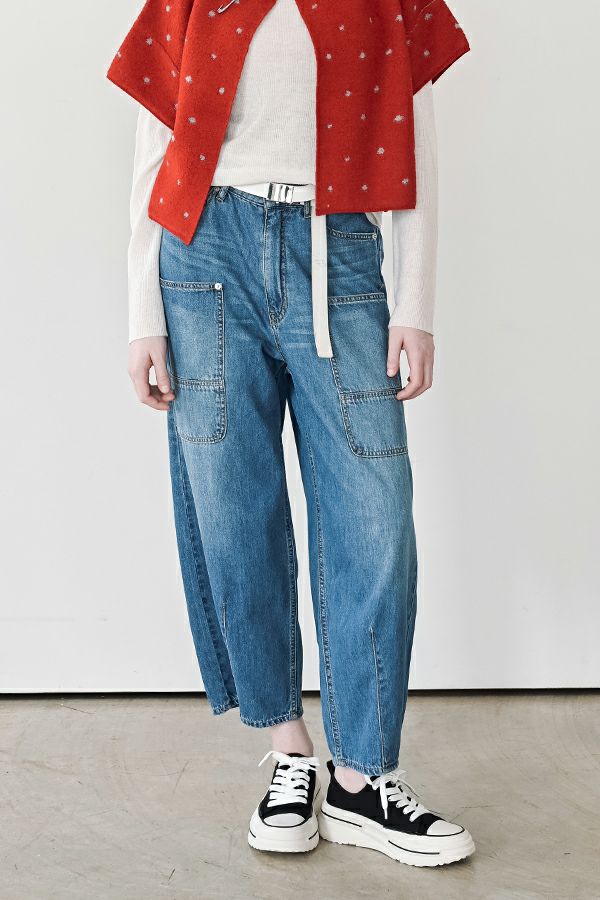 軽やかに纏う、大人デニムの新定番。 akane初の本格ジーンズとして誕生した、大人のための洗練デニム。長いシーズン心地よく着用できるよう、7.8オンスの薄手デニムを採用。薄手ならではの軽やかさと自然な落ち感が、デニム特有の重さを感じさせず、すっきりとした美しいシルエットを叶えます。 後ろウエストはリラックス感のあるギャザーゴム仕様で、程よくゆとりのあるはき心地。裾に長めのダーツを入れることで広がりすぎず、品のあるコクーンラインに仕上げました。 大人カジュアルからナチュラルモードまで、幅広いスタイルで活躍する一本です