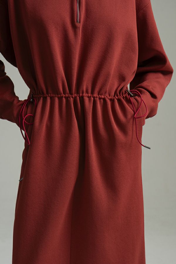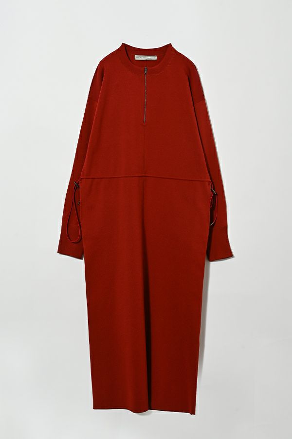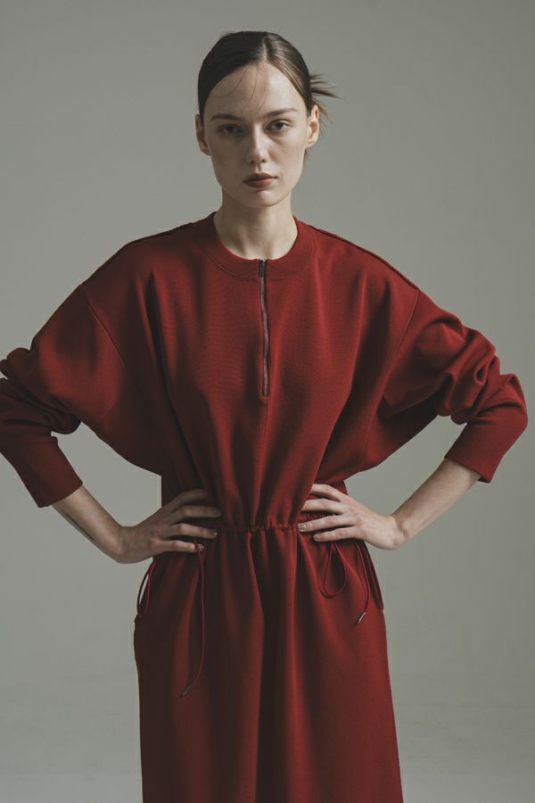 デイリーからオケージョンまで、着るだけでサマになる洗練ワンピース。 1枚でさらっと決まる、万能アイテム。ウエストのスピンドルでシルエットに変化をつけられ、その日の気分やスタイリングに合わせて自由自在に調整可能。計算されたリラックスシルエットは体のラインを拾わず、すっきりとした印象に。しわになりにくい素材で、持ち運びや旅行にも最適です。 上品なマットな光沢のあるニット糸を採用し、シーズンを問わず長く着られるのも嬉しいポイント。日常使いはもちろん、オフィスやお出かけ、ちょっとしたフォーマルシーンまで、あらゆるシーンで頼れる着回し力抜群のアイテムです。 【秋のモダンレイヤード】 ショート丈ジャケットを羽織れば、エッジの効いたスタイリングに。足元はロングブーツやスクエアトゥのブーティでモード感をプラス。 【冬のエフォートレス&洗練コーデ】 オーバーサイズのロングコート(チェスターやノーカラー)をさらりと羽織って、ミニマルで洗練されたスタイルに。 ●手洗い可