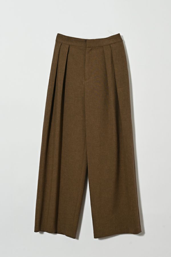 美シルエットで魅せる、2タックストレートパンツ。 2タックが生み出すゆとりとストレートシルエットの絶妙な組み合わせが、美しいラインを演出。ボリュームのあるストレートシルエットは引き続きトレンドを反映し、シンプルなデザインで仕立て映えする素材感が惹き立ちます。 麻調、ウール調の質感を持つポリエステルトロピカル素材を使用。 通気性や軽さが特徴の細い糸で織られた平織り生地は、ALLシーズン愛されるアイテムです。 インドやマレーシアなどの熱帯地方で好まれたことから「熱帯的な」という意味を持つ"トロピカル"の呼び名が付いたと言われています。 同素材のジレとセットアップで着用することで、セレモニーシーンにも最適。カジュアルからキレイめまで、幅広いスタイルにマッチする一本です。ワンピースのインナーとしてもモードな着こなしを楽しめます。●【Naturemier™】(ナチュレミア):タグ付 吸水速乾/イージーケア/UVカット/シワになりにくい/ソフトタッチ ナチュレミアは、天然素材のような優しい手触りと快適な着心地を実現する様々な機能を持ち合わせた素材です。●日本製 / 手洗い可●Vカットジレ(25223-5568Y)とセットアップ可