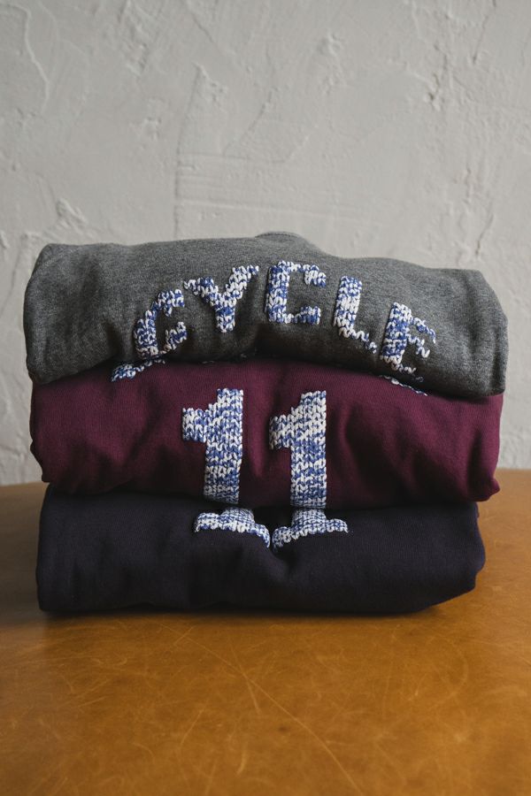胸元には、膨らみ感のある発泡プリントをオン。今シーズンのカットソーのプリントのテーマは「グリーンランドへの旅」。太陽活動サイクル"サイクル11"を背景に、オーロラとともに地元住人の伝統や自然の中からインスピレーションを受けたデザインになっています。