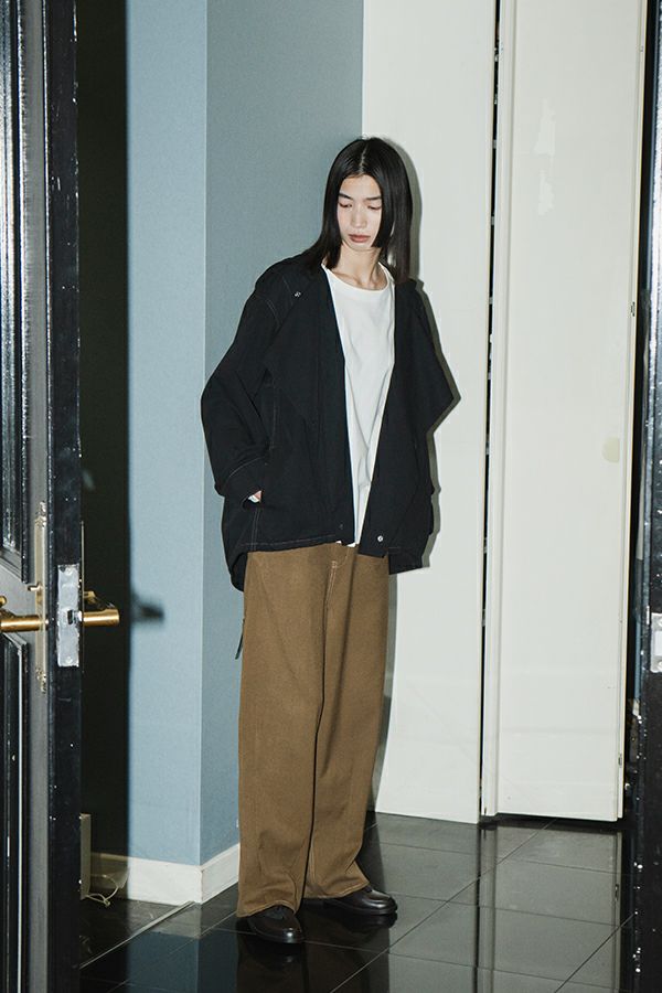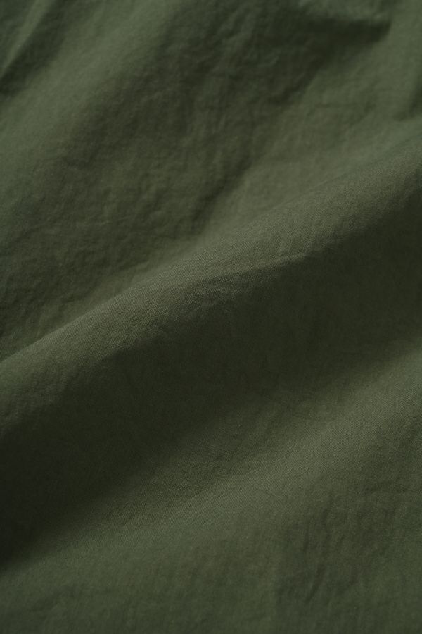 ミリタリーを今の気分で、ドレープが揺れるショートモッズパーカー。 適度なハリ感にあるミリタリー素材を着古感がでるように加工しています。洗いをかけることで、柔らかさが出て、ソフトな肌触りに。 縫製には、かつてのワーク&ミリタリーウェアに宿る、糸を交換する手間を省略するために細く長い糸を使用し強度を増すため2本取りにした“効率と工夫”のストーリーをインスピレーションにしたステッチデザインを採用。巻き縫いミシンや二本取りステッチが、無骨な雰囲気と共に、見えない手間の美しさを感じさせてくれます。
