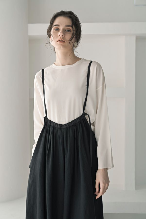 シンプル&軽やか、オールシーズン活躍するシフォンロンTEE。 ほどよくゆとりを持たせた身幅に、すっきりとした細めの袖がバランスの良いシルエットを演出。 合繊素材ながらナチュラルなシワの表情が新鮮かつ繊細な印象に。さまざまなアイテムとのスタイリングが楽しめます。袖口と裾はカジュアルなロックで仕上げで、軽やかさをプラス。シーズンレスに活躍する一枚です。 ジャケットのインナーとしてはもちろん、ニットやシャツ、ビスチェとのレイヤードなど着こなしの可能性は無限大。薄手で使い勝手が良く、秋は一枚着として、冬から春先はインナーにと3シーズン活躍してくれます。 ●日本製