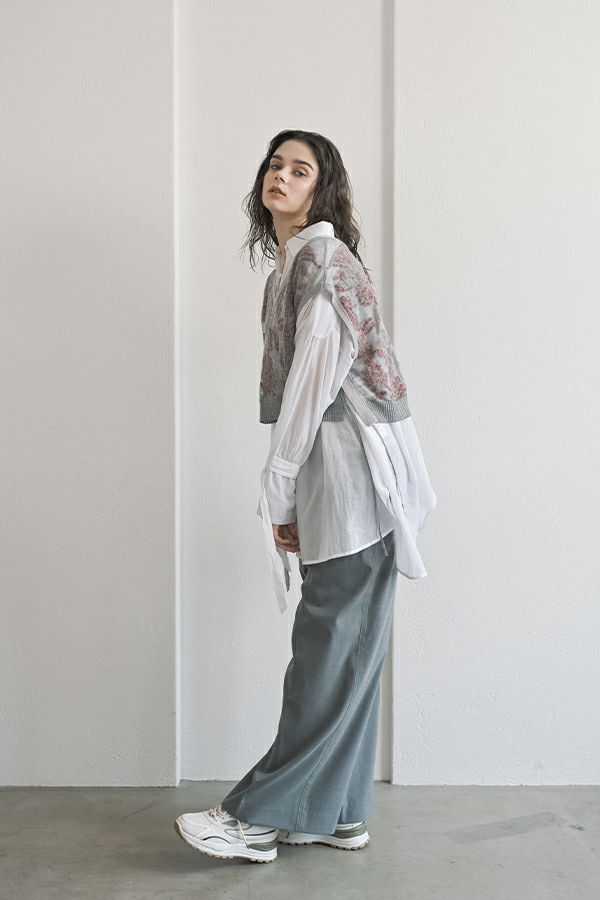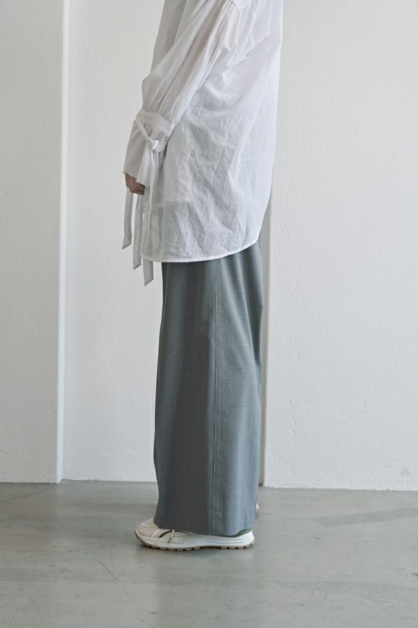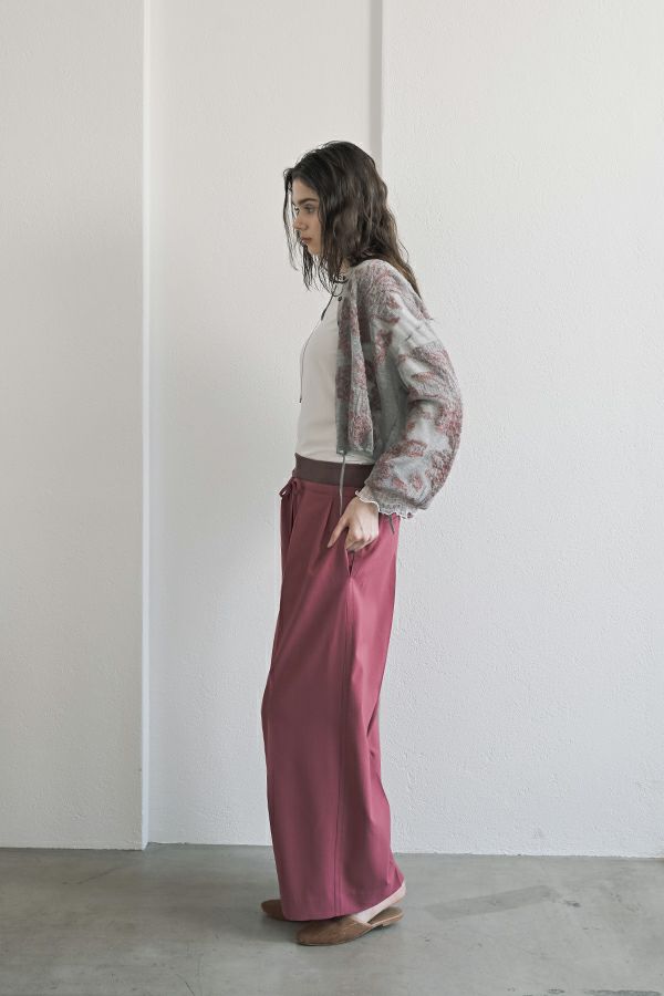 美しい落ち感が魅力、万能セミワイドパンツ。 ストンと落ちるシルエットが上品な、ウエストゴム仕様です。落ち着いたピンクやブラウンなど、穏やかで秋らしいカラー展開が魅力です。程よい落ち感のある生地とセンタープレスが、脚のラインを拾わずすっきりとした印象に。 どんなトップスとも相性が良く、汎用性の高いデザイン。 キレイめなシルエットながら、足元はあえてスニーカーで外すスタイリングもおすすめです。