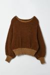 甘さとモードを両立する、大人のニット。 ふんわりとした肌ざわりと上品なぬくもりを備えた、フェザーヤーンのプルオーバー。リブ部分には別糸でラメを織り込み、主張しすぎない華やかさをひとさじ。柔らかな素材とほどよいボリューム感が今の気分にフィットしながら、ルーズすぎない洗練されたバランスに仕上げました。 素材の持つ質感を活かすなら、合わせるボトムは光沢感のあるスカートやメタリックなパンツでコントラストを効かせて。足元はヒールで縦ラインを引き締め、アクセサリーは繊細なものを一点だけ。甘さに頼らず、奥行きのある大人のスタイルが完成します。 “やさしさ”も“強さ”も内包した、今の気分に寄り添うニットです。 ●フェザーヤーンとは 羽毛のようにふわふわとした長い毛足が特徴の糸。
