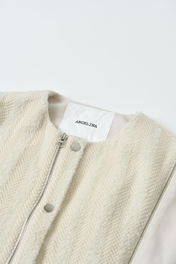 新バランスで魅せる、構築ツイードベスト。 クラシックなツイードに、メタルファスナーの無機質なシャープさを掛け合わせたアイテム。素材のコントラストが洗練された緊張感を生み出し、シンプルなスタイリングにひとさじの強さを与えます。 肩や身頃の立体的なフォルムが構築的なシルエットを生み、今季らしいモード感を演出し、着るだけでスタイルの輪郭を引き締めてくれる一枚。タートルネックやシャツとのレイヤードで袖にニュアンスを加えれば、さらに奥行きのある印象に。ワイドパンツやAラインスカートを合わせて重心を整え、モダンで都会的なバランスに仕上げるのがおすすめ。定番に甘んじない、スタイルに“エッジ”を効かせるベストです。●ウールツィード切替ハーフパンツ(25233-9732E)とセットアップ可