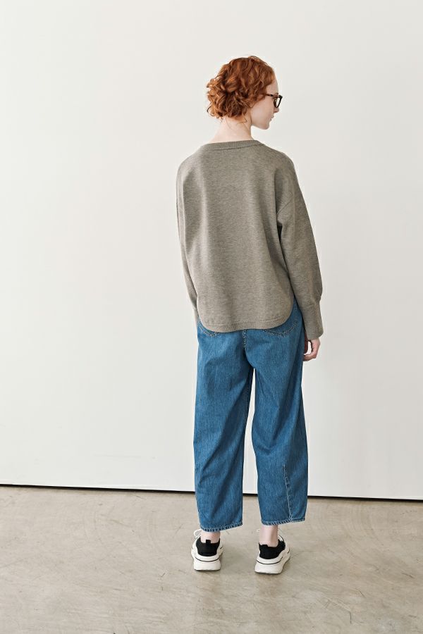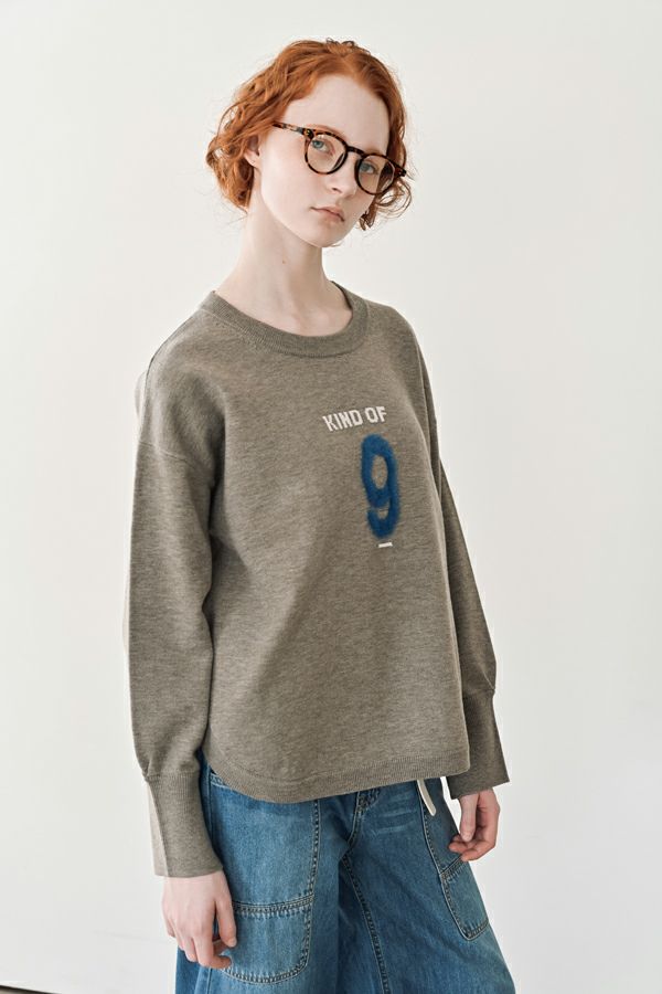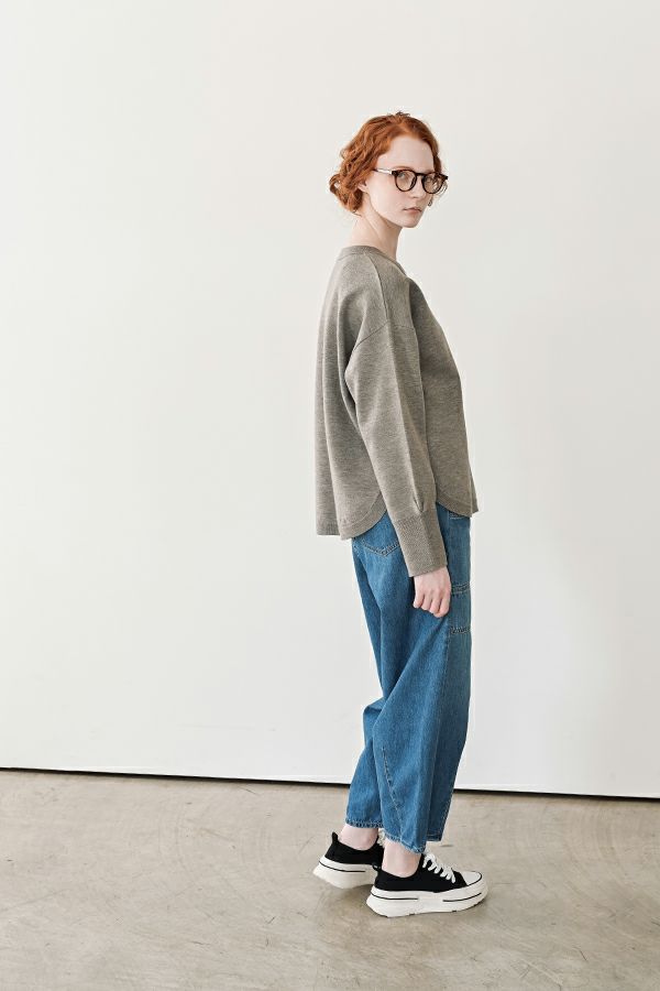 遊び心と上品さを一枚に。大人を惹き立てる主役ニット。 表情豊かなフェザーヤーンでカジュアルなロゴ使いがアクセントに。身頃本体はしっかりめのハイゲージニットでスッキリさせて品良くきれいめ印象をプラス。 着膨れせず程よくゆとりのあるサイジングに計算された女性らしいラウンド裾がシルエット美しく、シンプルに着るだけでスタイリングを格上げしてくれます。一枚着でもサマになる万能ニットです。 絶妙な丈感がボトムを選ばずにコーディネートしやすく、ラウンドした裾が腰周りに程よくゆとりがあるのでシャツをレイヤードしても素敵なスタイリングに決まります。