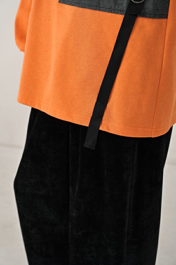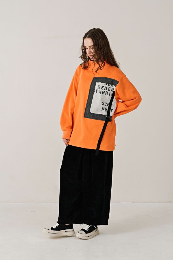 表情で魅せる、大人のカジュアルモード チュニック。 綿/ポリエステルの裏起毛素材が、柔らかさとあたたかさを両立。ゆとりのあるチュニック丈が身体のラインをさりげなく包み、自然な体型カバーを叶えます。 身頃にあしらったツイードと綿の布帛が、異素材のコントラストを演出。ミリタリーテイストのロゴが加わることで、抜け感のある大人カジュアルな表情に。 左脇のテープを絞れば、動きのあるヘムラインに変化し、気分やシーンに合わせた着こなしが楽しめます。 一枚で洒落感をつくる、モードな存在感を放つアイテムです。