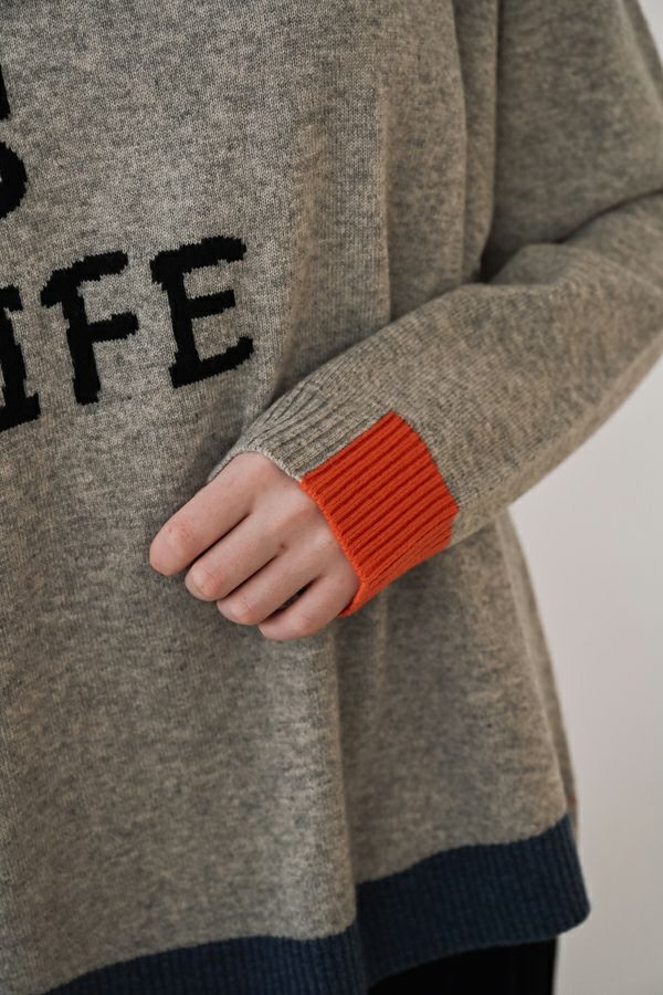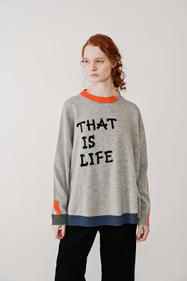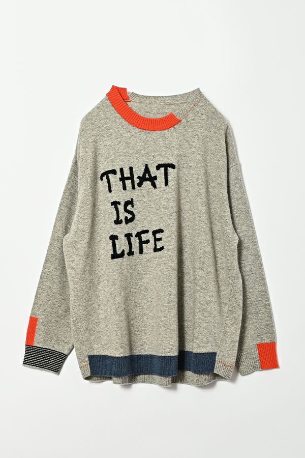 "再構築"が映える、大人のためのアートニット。 衿はリブ丈の違うバイカラーのデザイン編み、アンバランスなポジションのロゴデザイン、袖リブは左右で違うデザインなど、細部にわたり技アリのニットテクニックを贅沢に取り入れた、洗練された一枚。 人とは違う自分だけのスタイルで特別感がありながらも、程よくゆとりのあるシルエットで腰まわりをカバー、ヒップにかかるレングスはサッと纏ってサマになるのも嬉しい優秀ニットです。 絶妙な丈感がボトムを選ばず、パンツにもスカートにも好相性。アートピースのような存在感で、大人のカジュアルスタイルを格上げします。