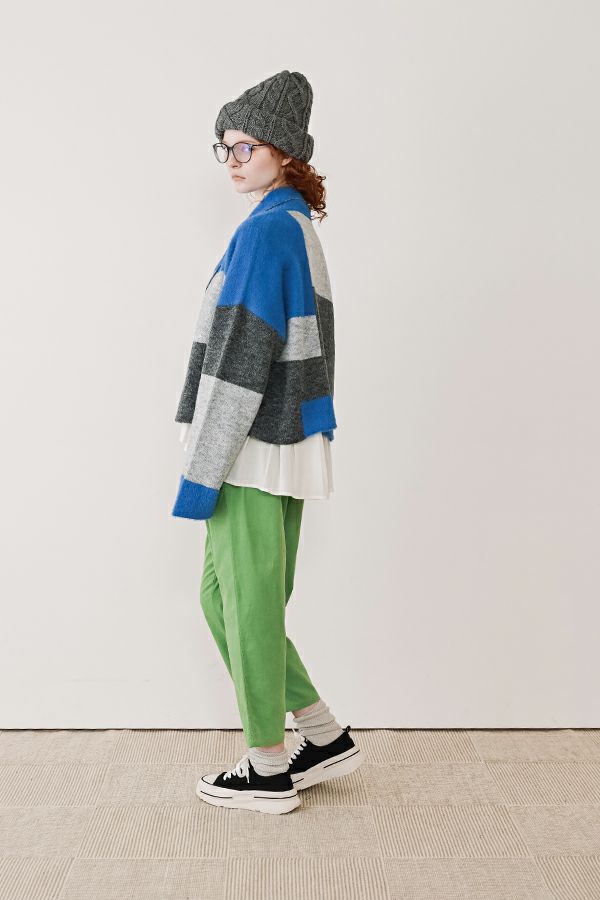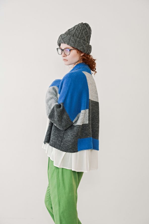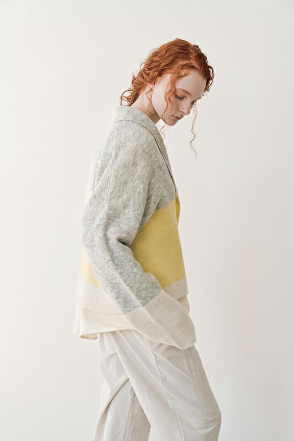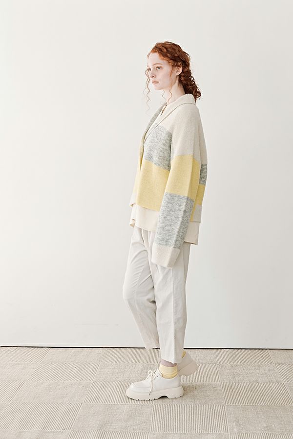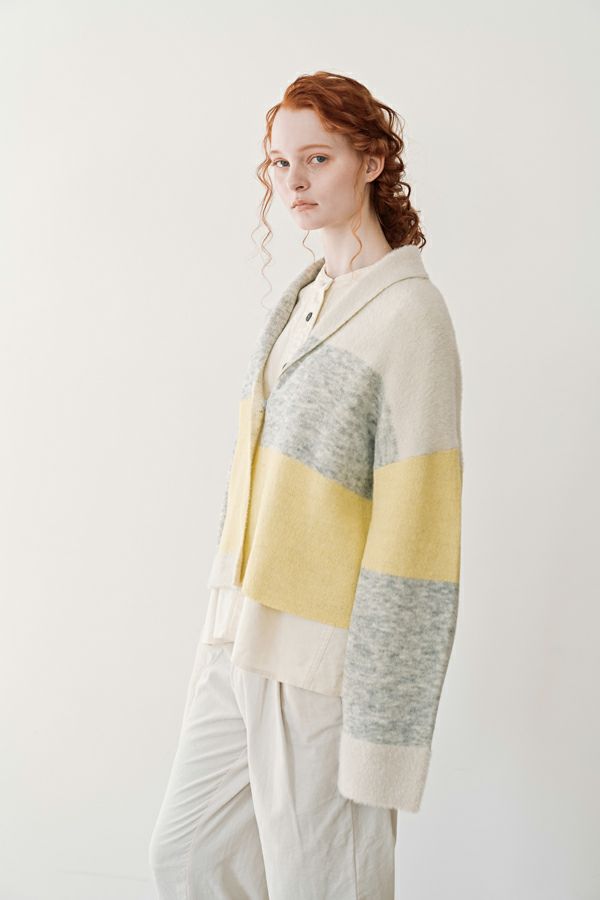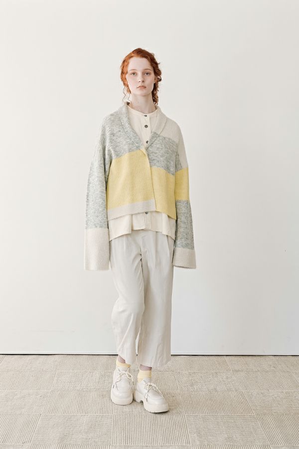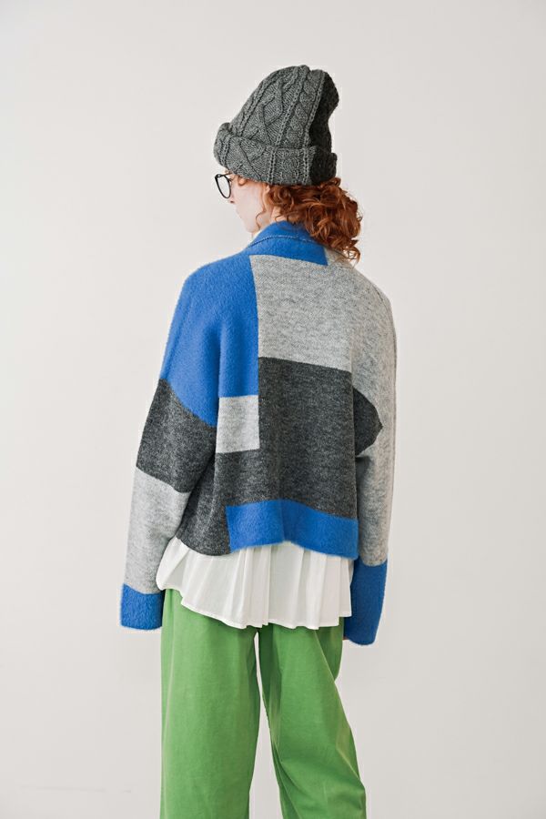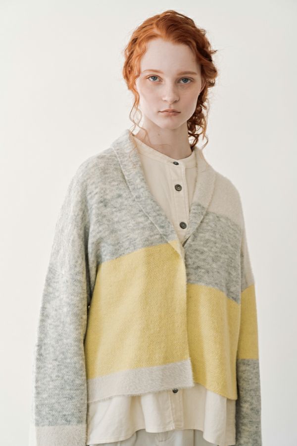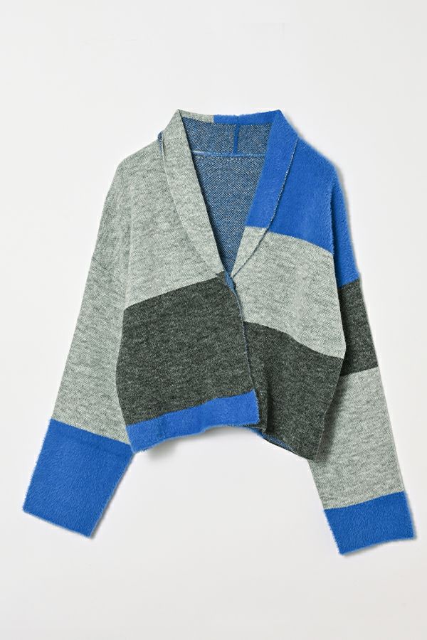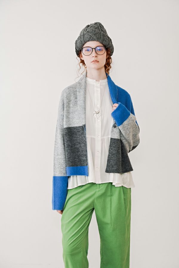 アートな表情を纏う、優雅に羽織る大人のショールカーディガン。 アートに編み上げたジャガード柄に、部分的にあしらわれた短い起毛糸の鮮やかな発色が目を惹く、秋冬の装いに映える一枚。柔らかく編み立てたショールカラーが首元をやさしく包み込み、ぬくもりある肌触りと心地良さを叶えます。 上半身をすっぽりと包み込むリラクシーな着心地ながら、バランスの取りやすい丈感でジャケット感覚でも羽織れる万能アイテム。 シックなカラーのボトムスを合わせれば洗練されたオンスタイルに、デニムと合わせて程よく力の抜けた大人のカジュアルコーデも楽しめます。秋冬のスタイリングをクラスアップする、主役級のカーディガンです。